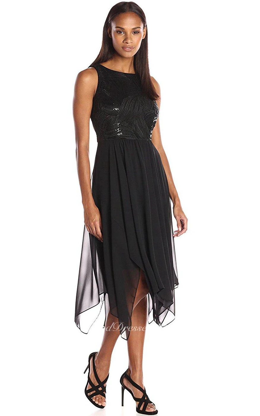 Sleeveless Knee-length A-line Tulle Dress with Sequins