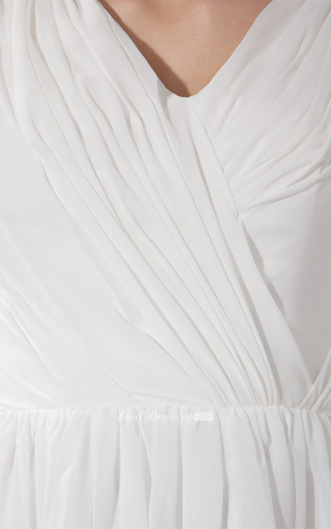 Sleeveless Knee-Length Low-V-Back Pleats and Dress With Ruching