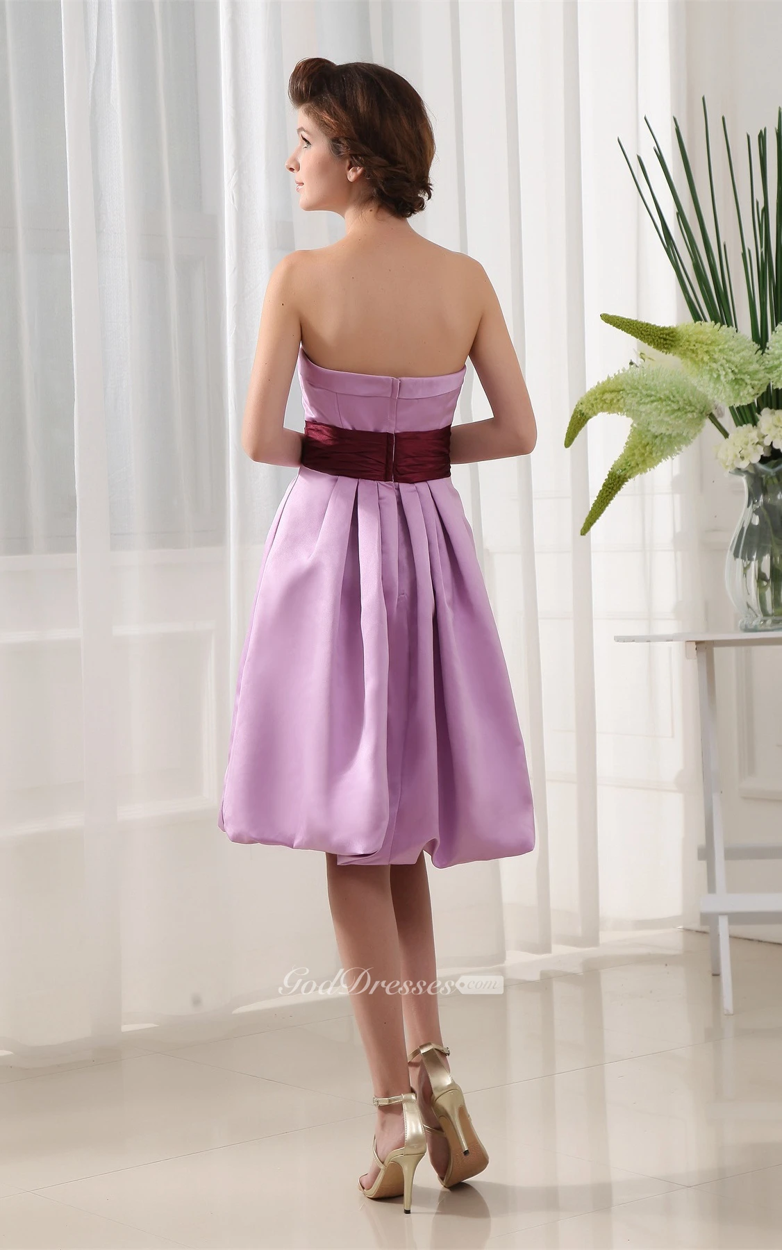 Sleeveless Knee-Length Satin Dress With Ruched Waist