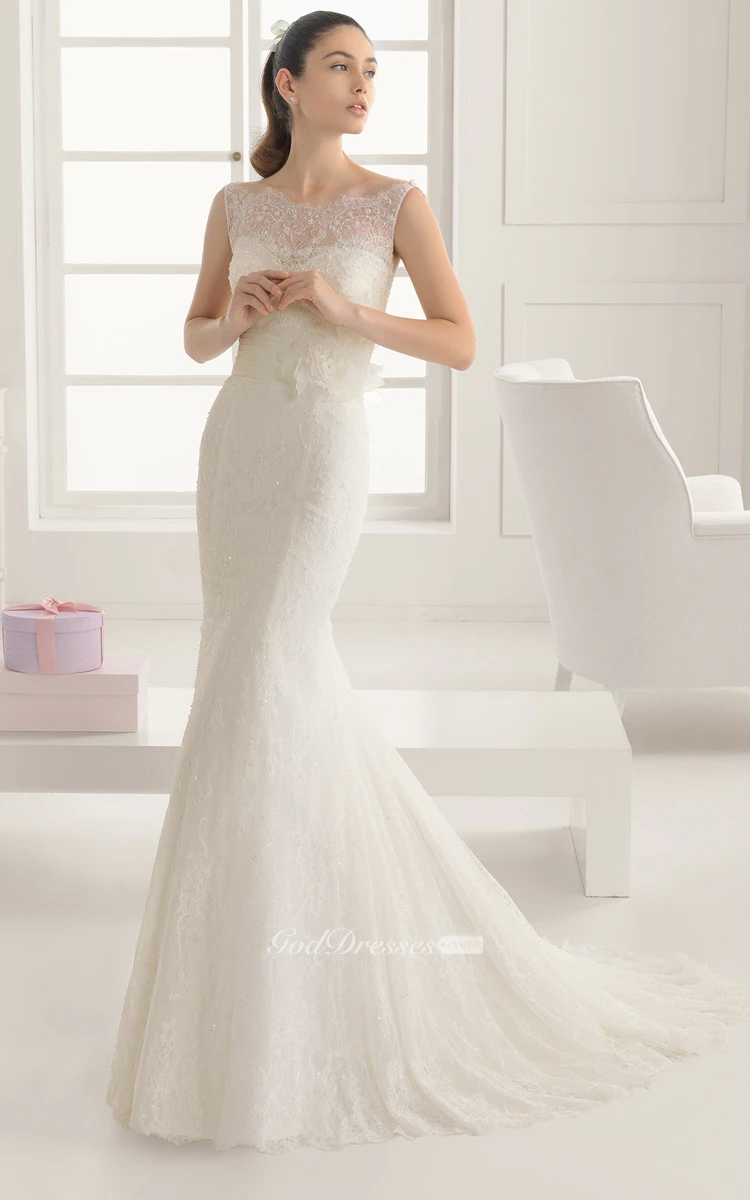 Sleeveless Lace Mermaid Dress With Giveaway Watteau Train