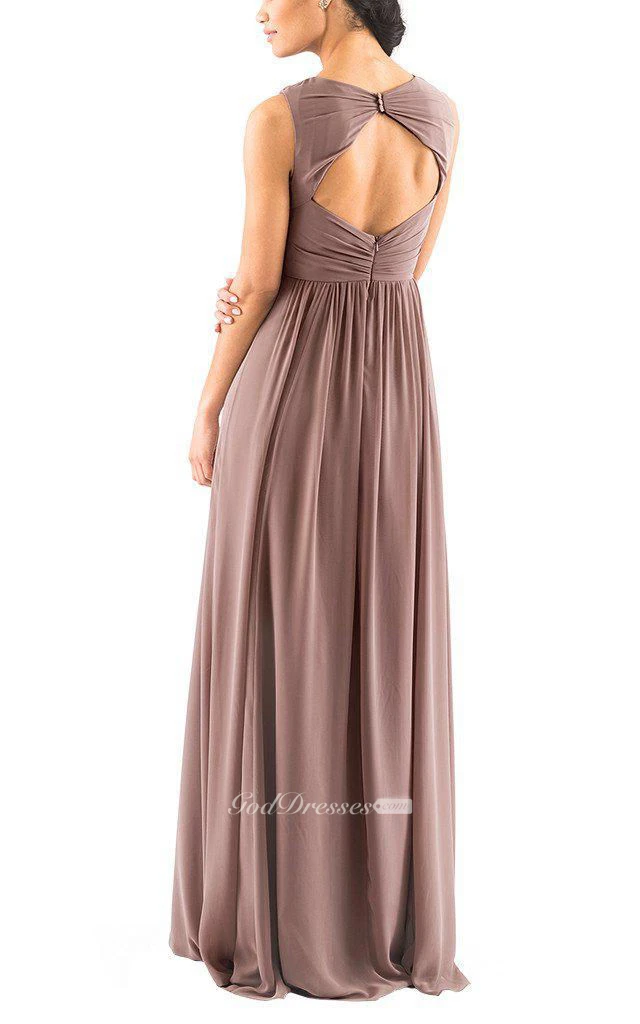 Sleeveless Long Chiffon Bridesmaid Dress with Ruching