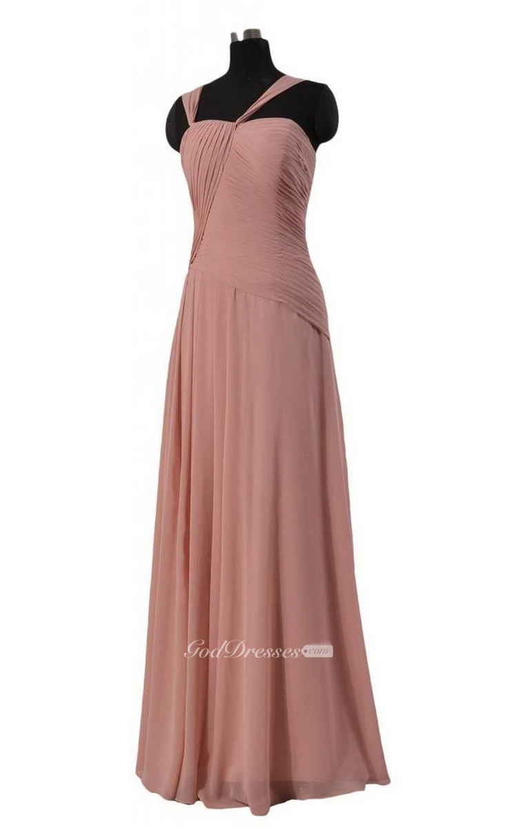Sleeveless Long Chiffon Dress With Asymmetrical Ruching