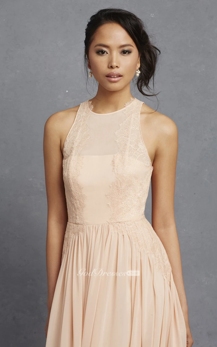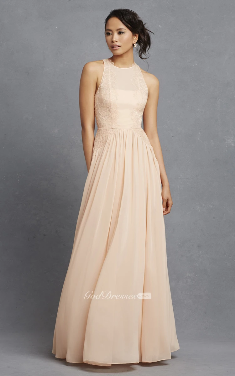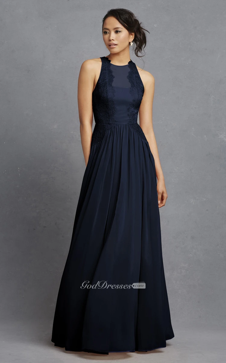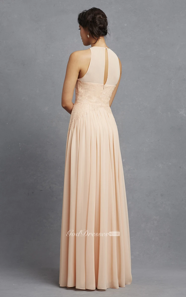 Sleeveless Long-Chiffon Dress With Lace Appliques