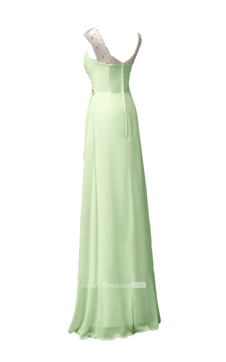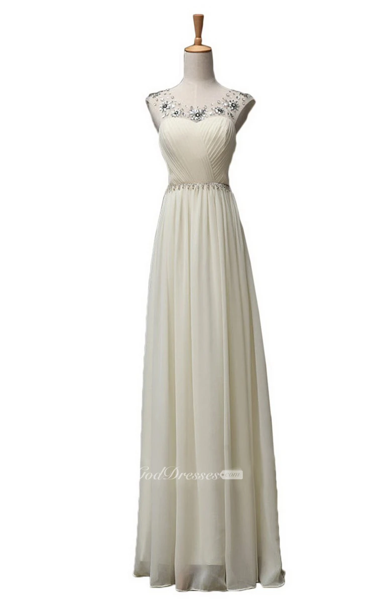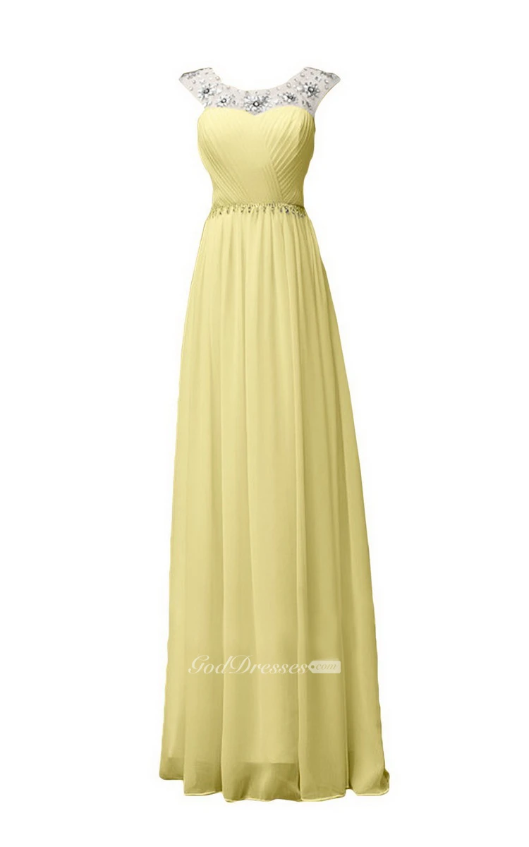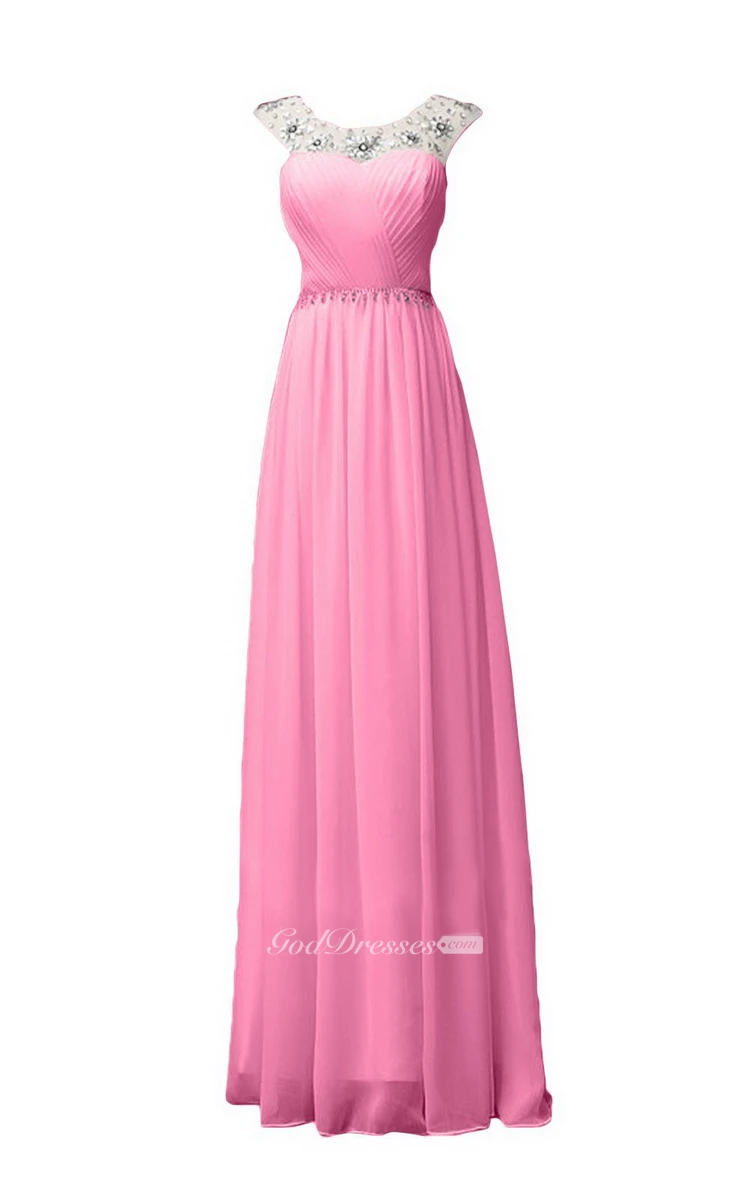 Sleeveless Long Ruffled Chiffon Dress With Beaded Neck