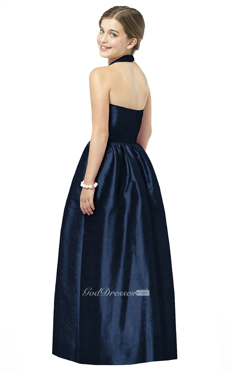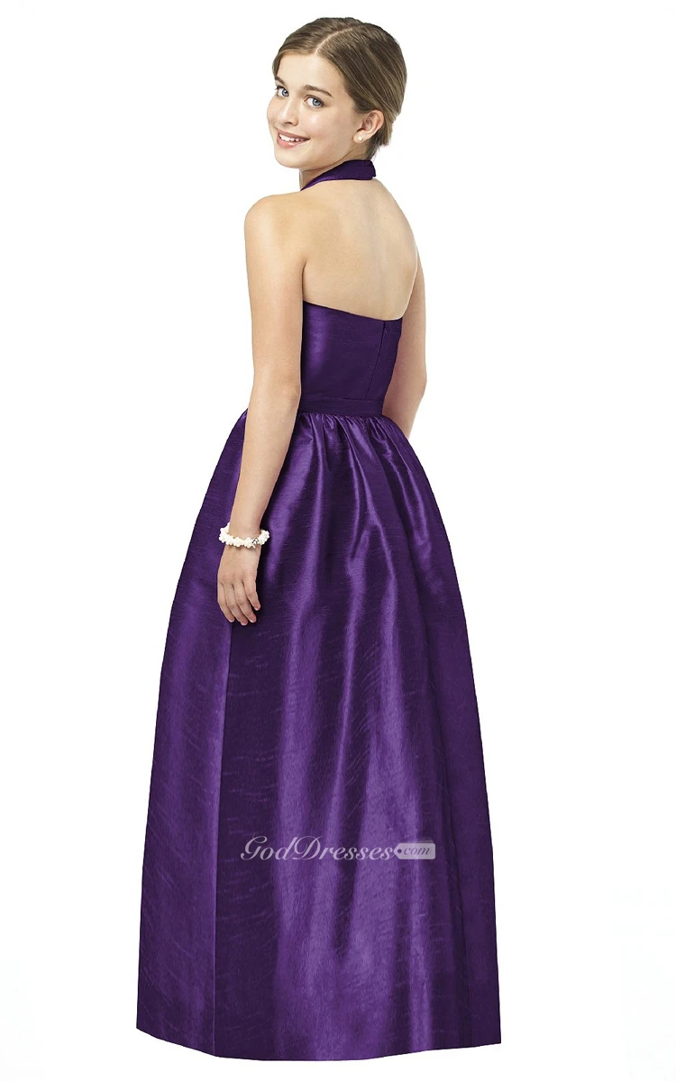 Sleeveless Lovely Long Satin Halter A-Line Dress
