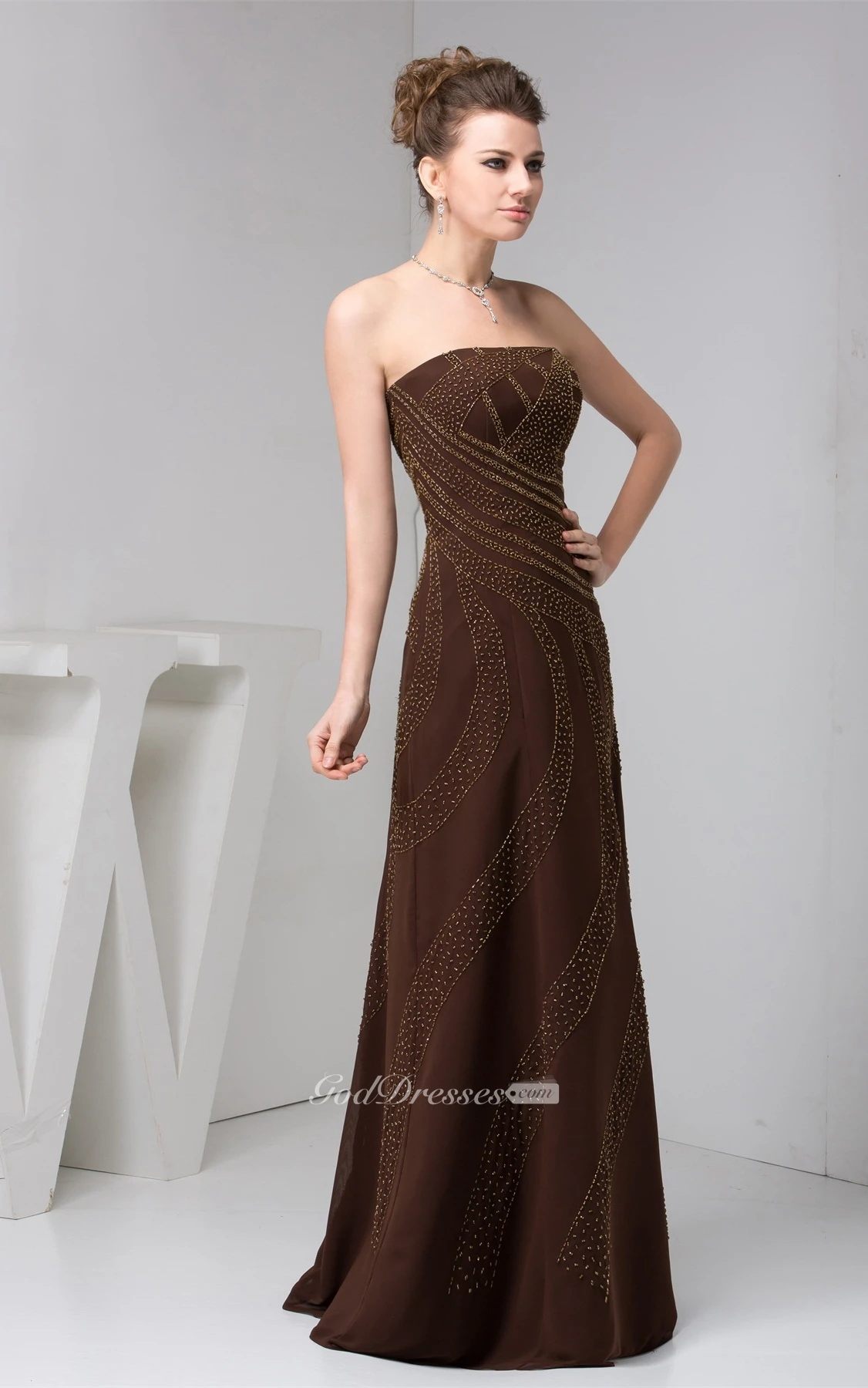 Sleeveless Maxi Chiffon Dress With Beading
