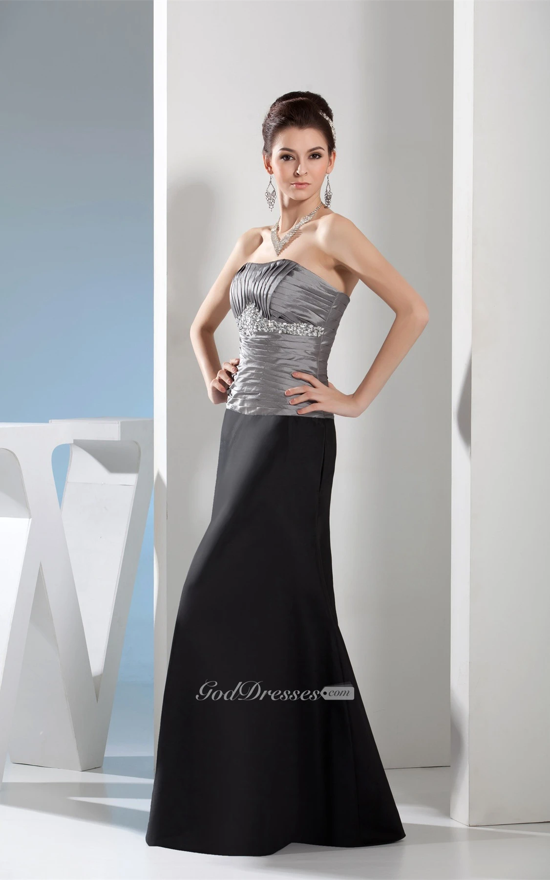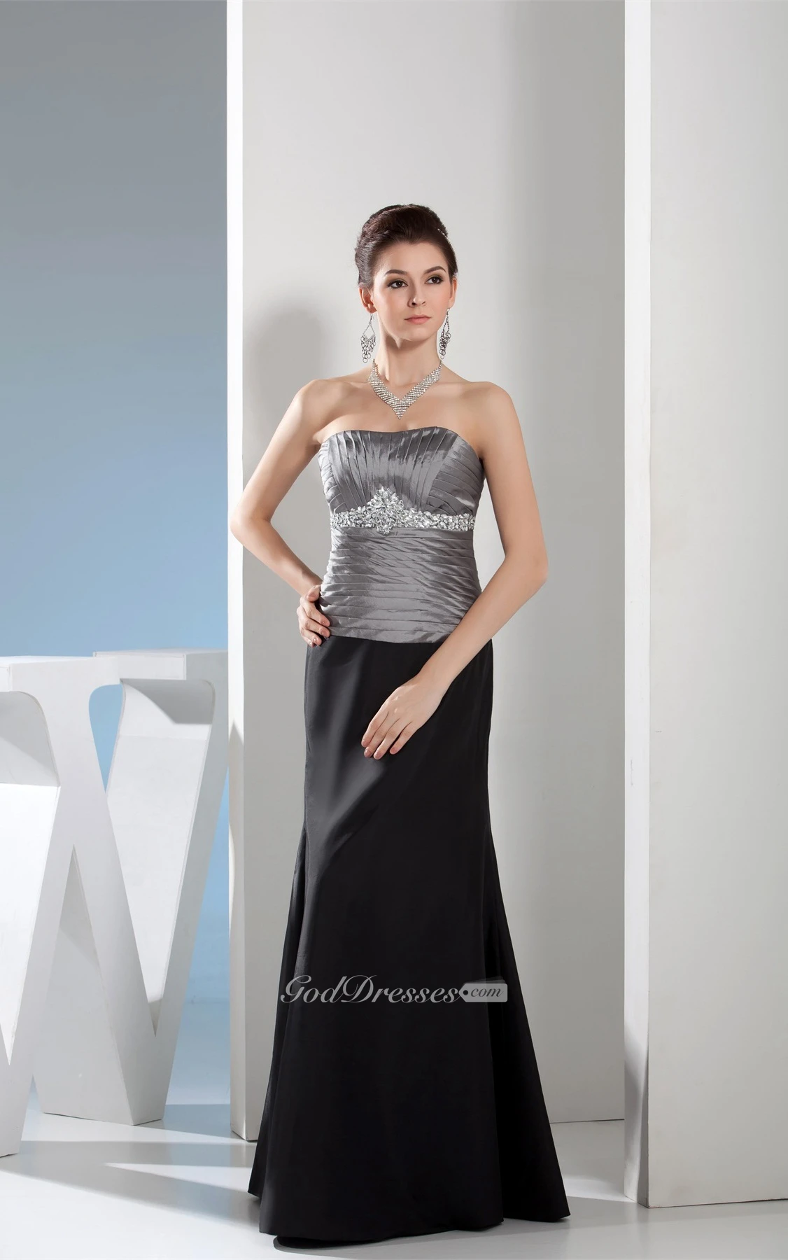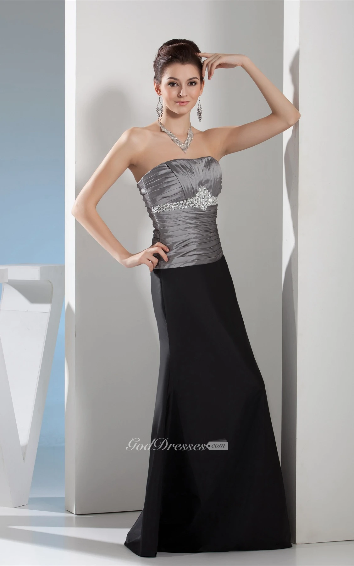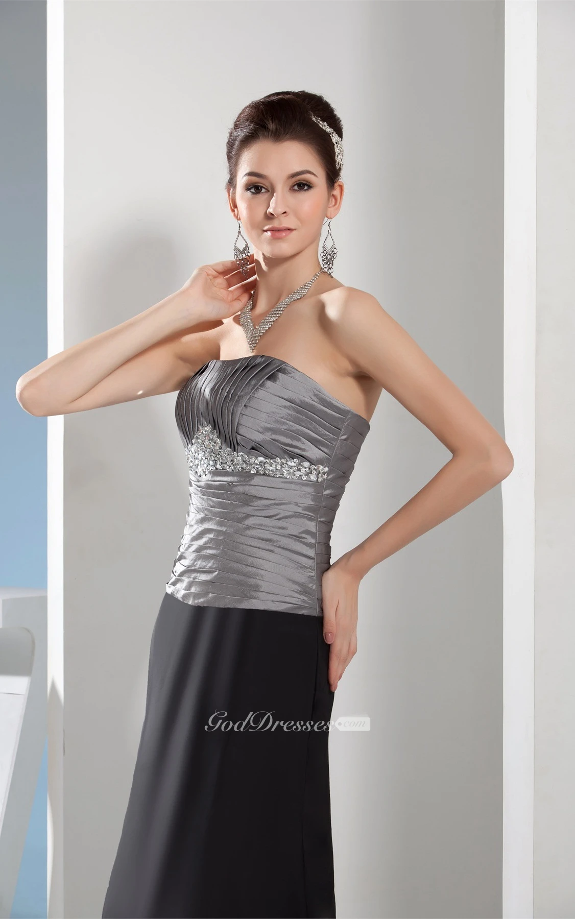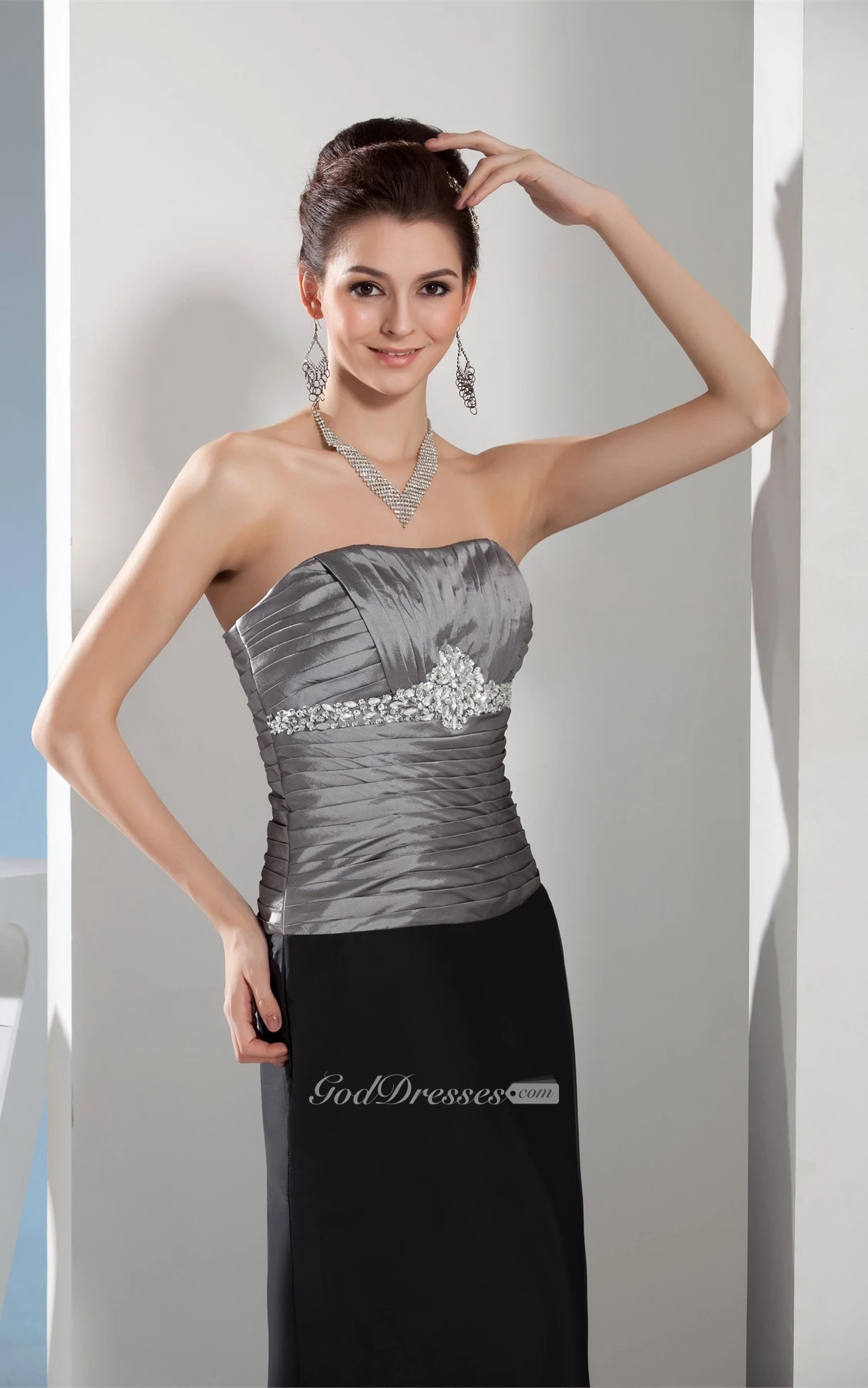 Sleeveless Maxi Ruched Gemmed Waist and Dress With Ruching