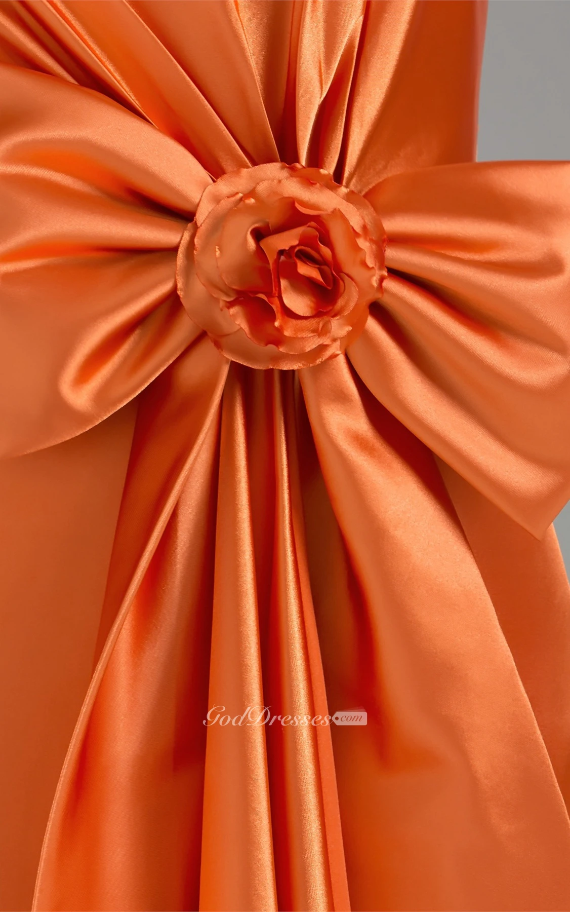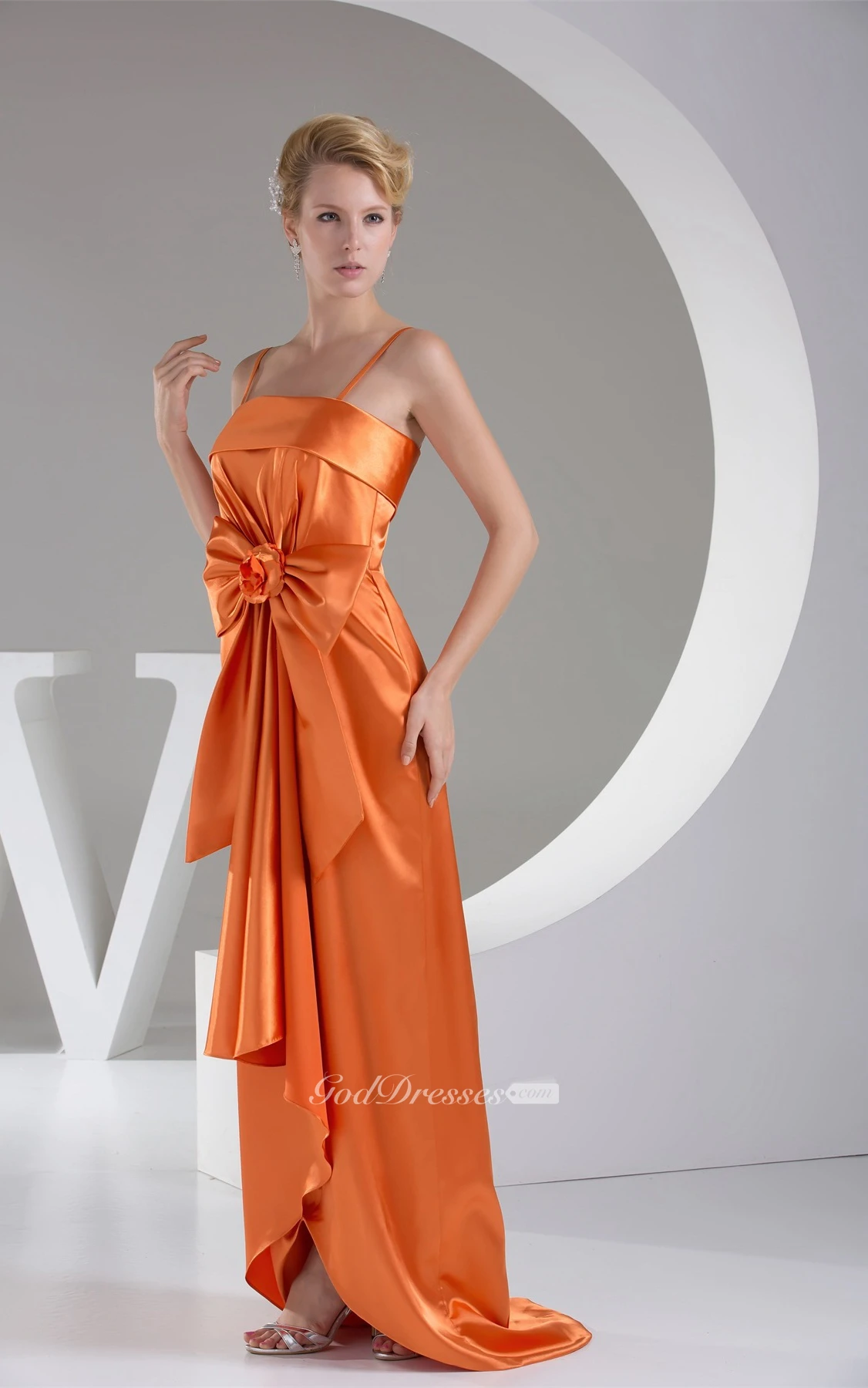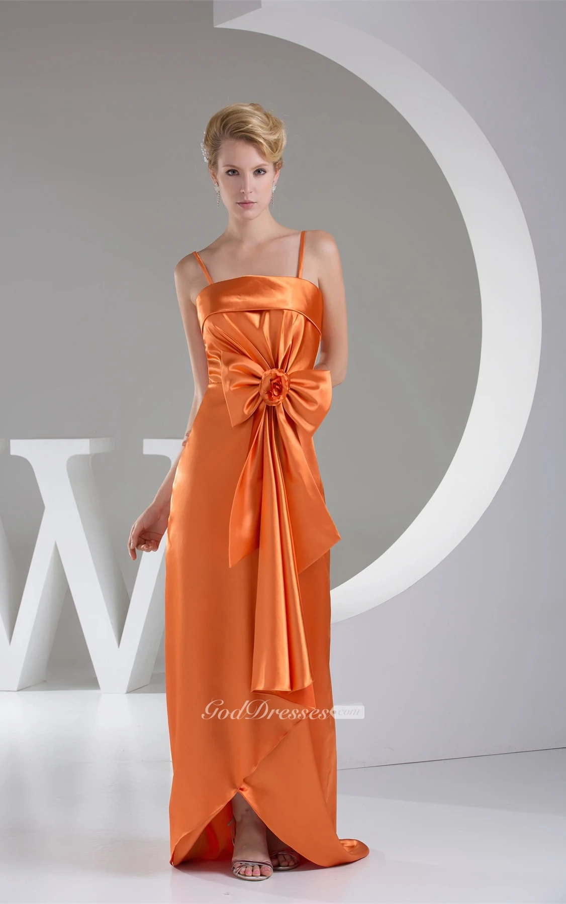 Sleeveless Maxi Satin Bow and Dress With Spaghetti Straps