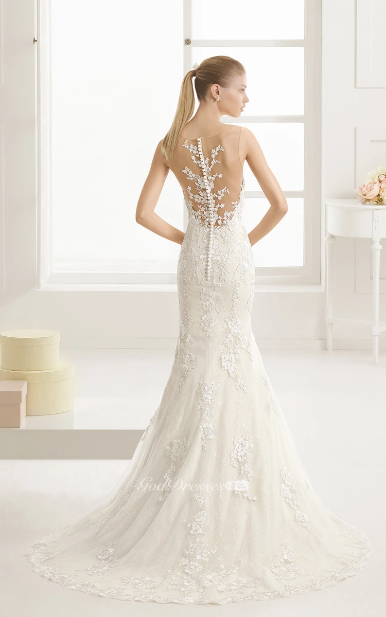 Sleeveless Mermaid Dress With Illusion Neck