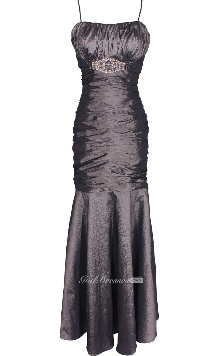 Sleeveless Mermaid Gown With Ruching and Square Neck