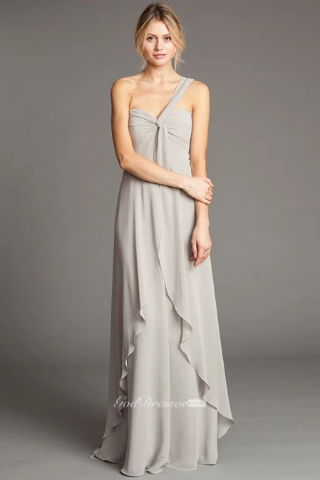 Sleeveless One-Shoulder Chiffon Bridesmaid Dress With Draping And Straps