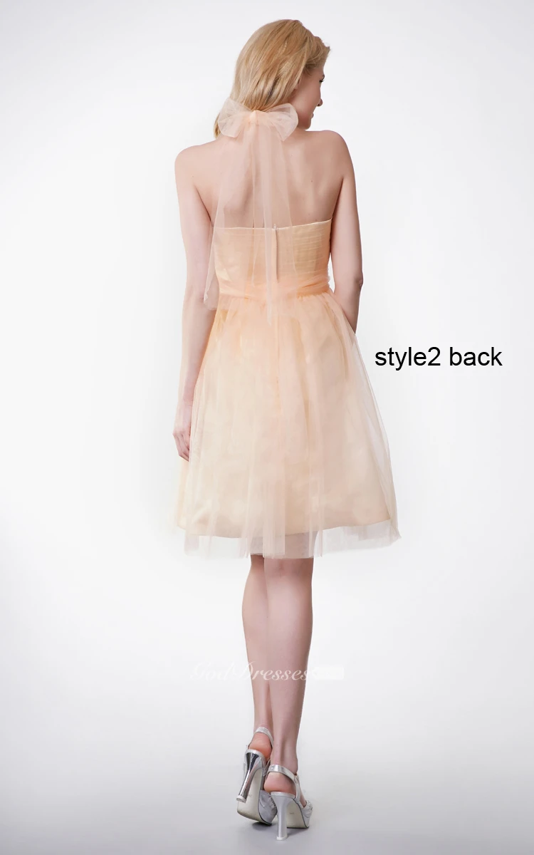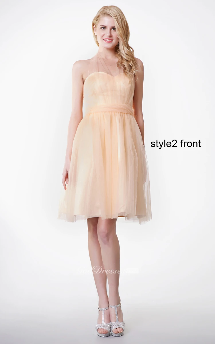 Sleeveless Pleated A-line Short Tulle Dress With Changeable Straps