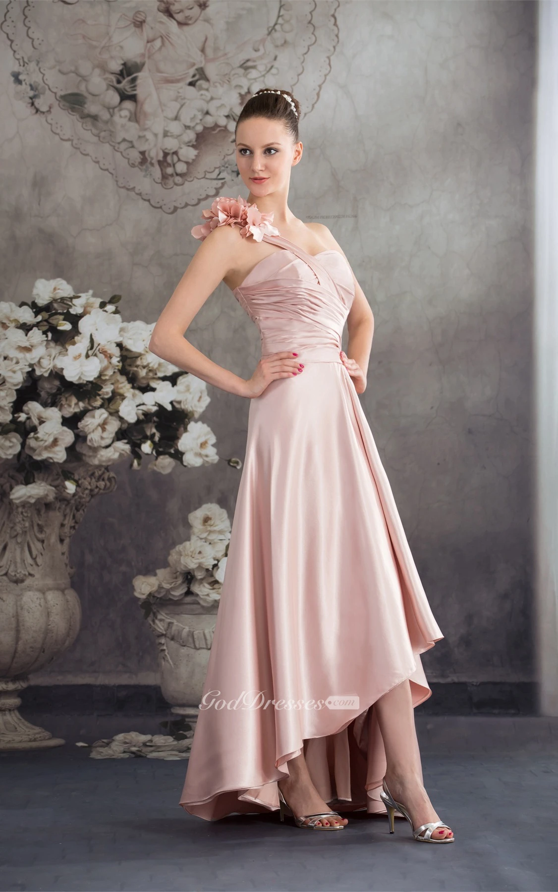 Sleeveless Pleated High-Low Floral Epaulet and Dress With Ruching