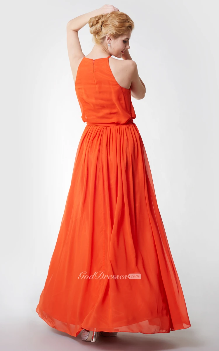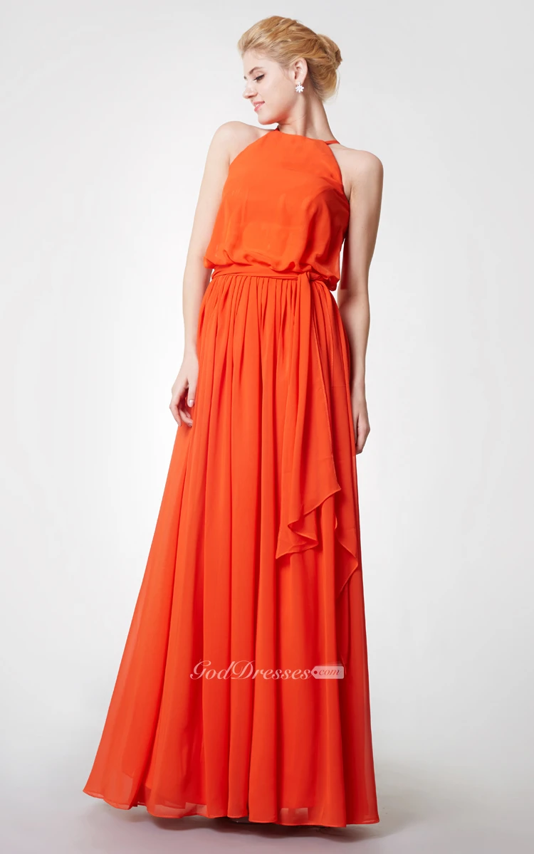 Sleeveless Pleated High Neck Chiffon Dress With Sash