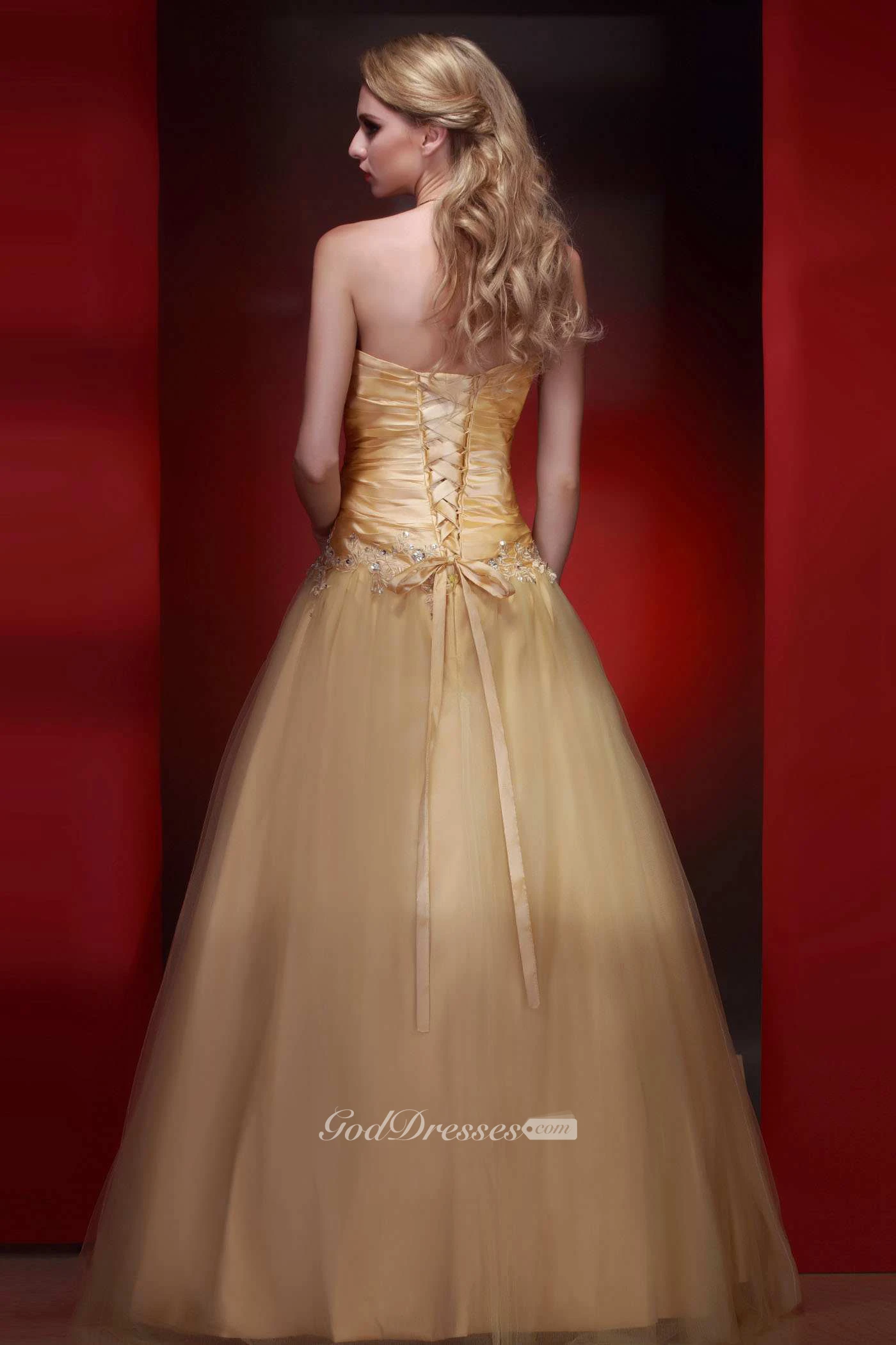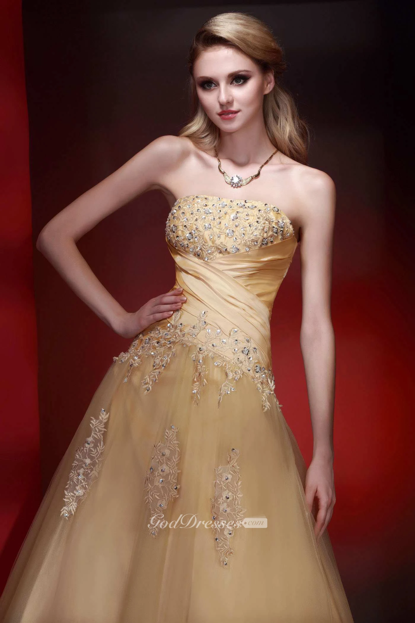Sleeveless Ruched Beaded A-line Tulle Gown