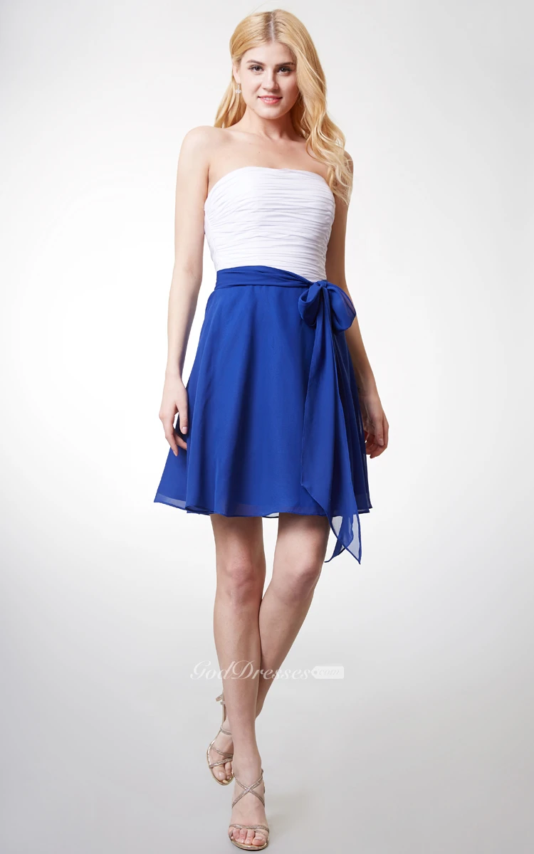 Sleeveless Ruched Bodice A-line Chiffon Dress With Sash