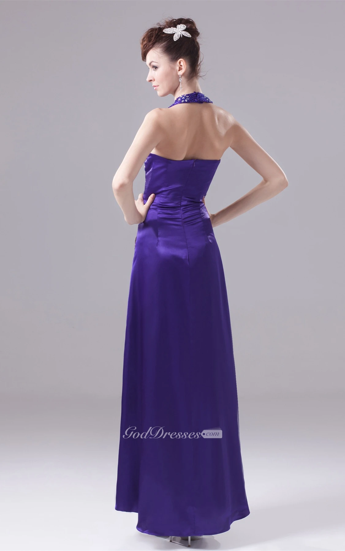 Sleeveless Ruched High-Low Rhinestone and Dress With Flower