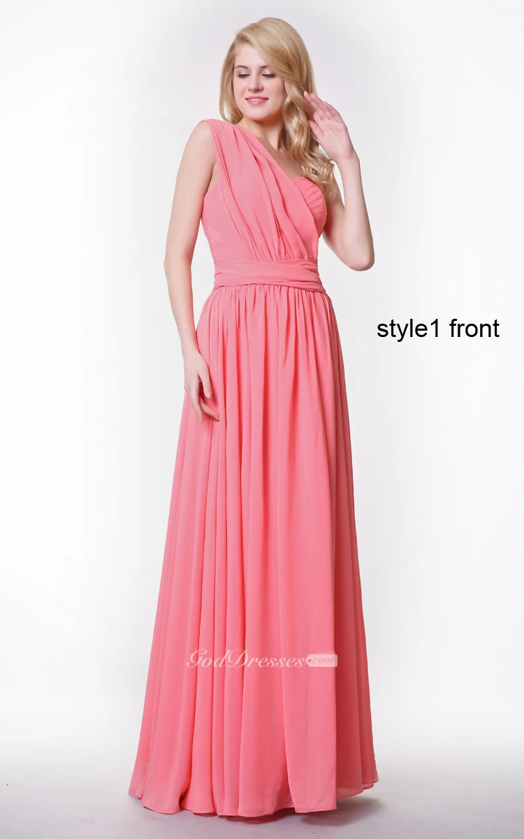 Sleeveless Ruched Long Chiffon Convertible Dress With Pleats