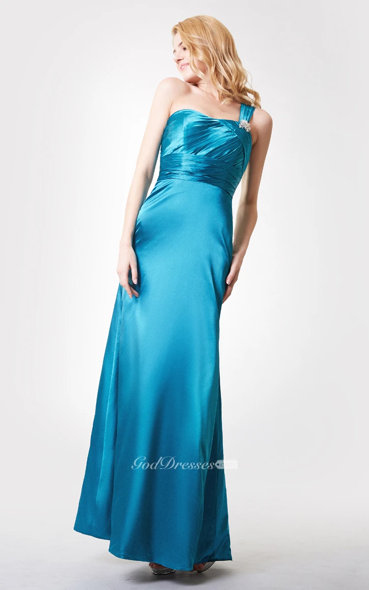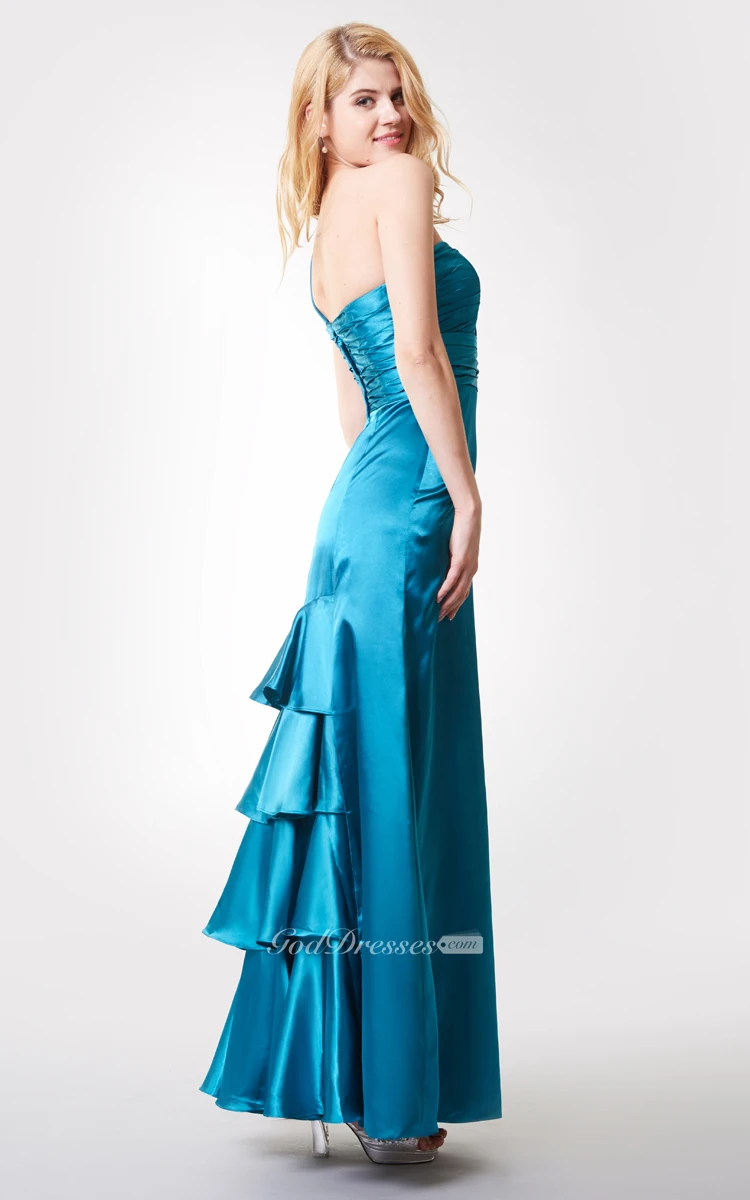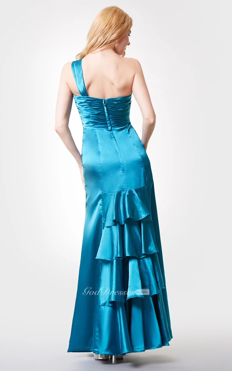 Sleeveless Ruched Long Chiffon Dress With Crystal Brooch and Tiers