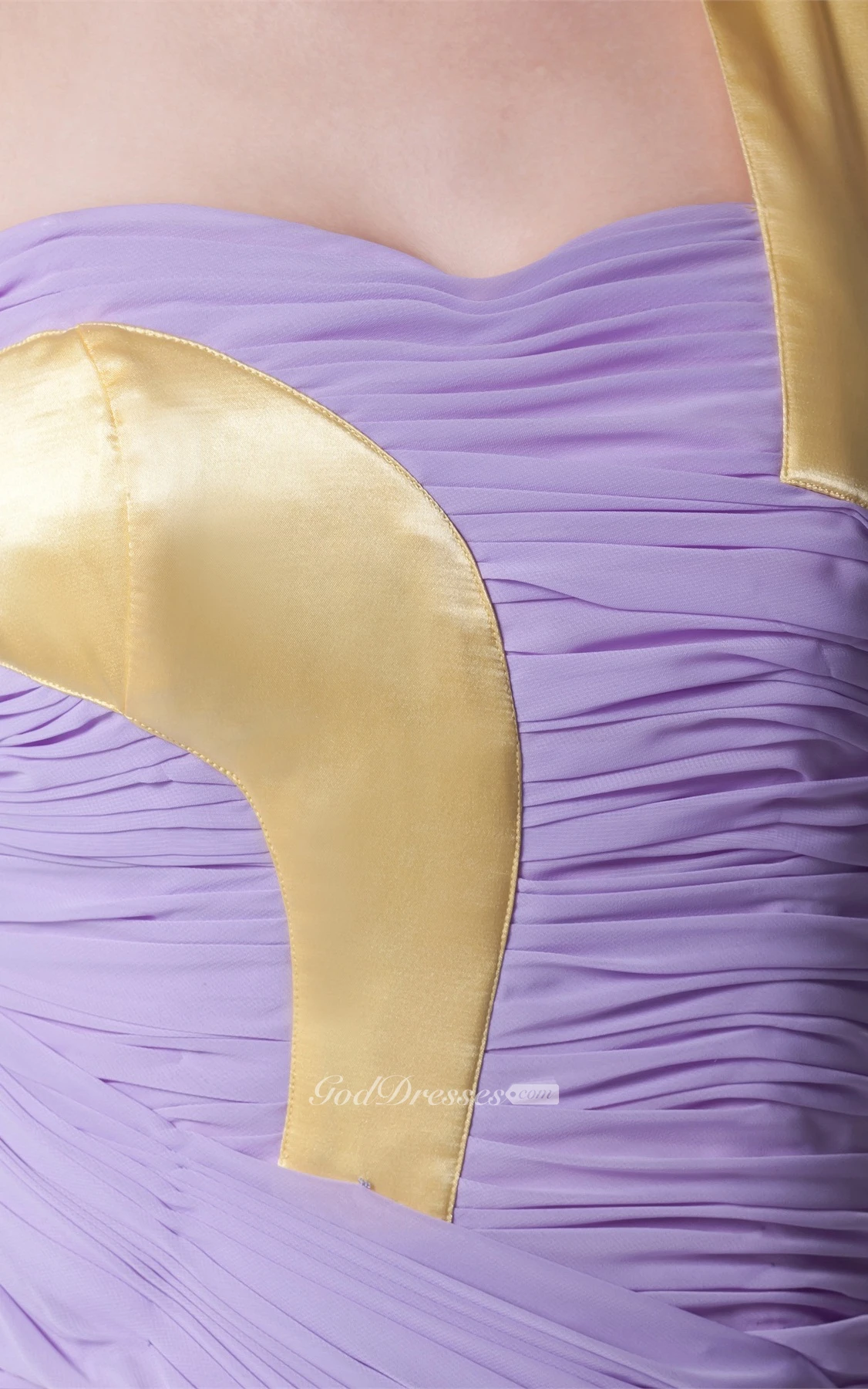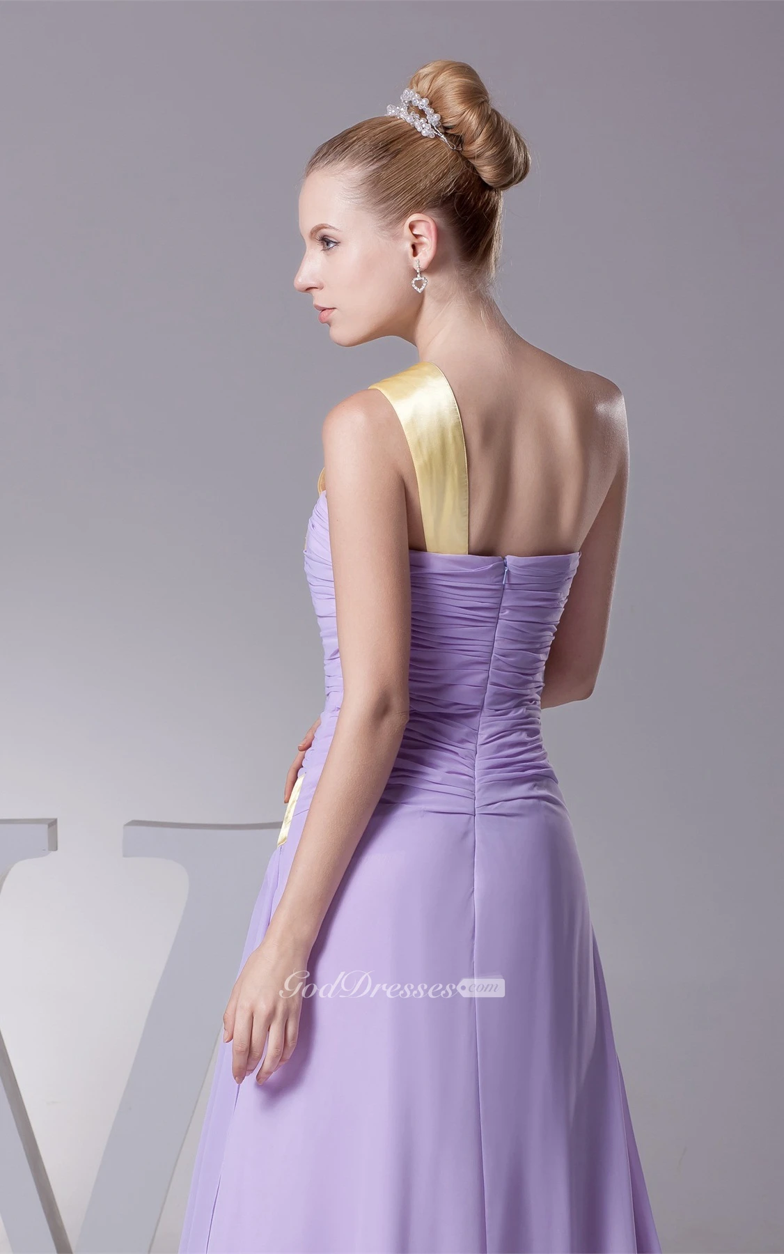 Sleeveless Ruched Maxi Chiffon Dress With Single Strap