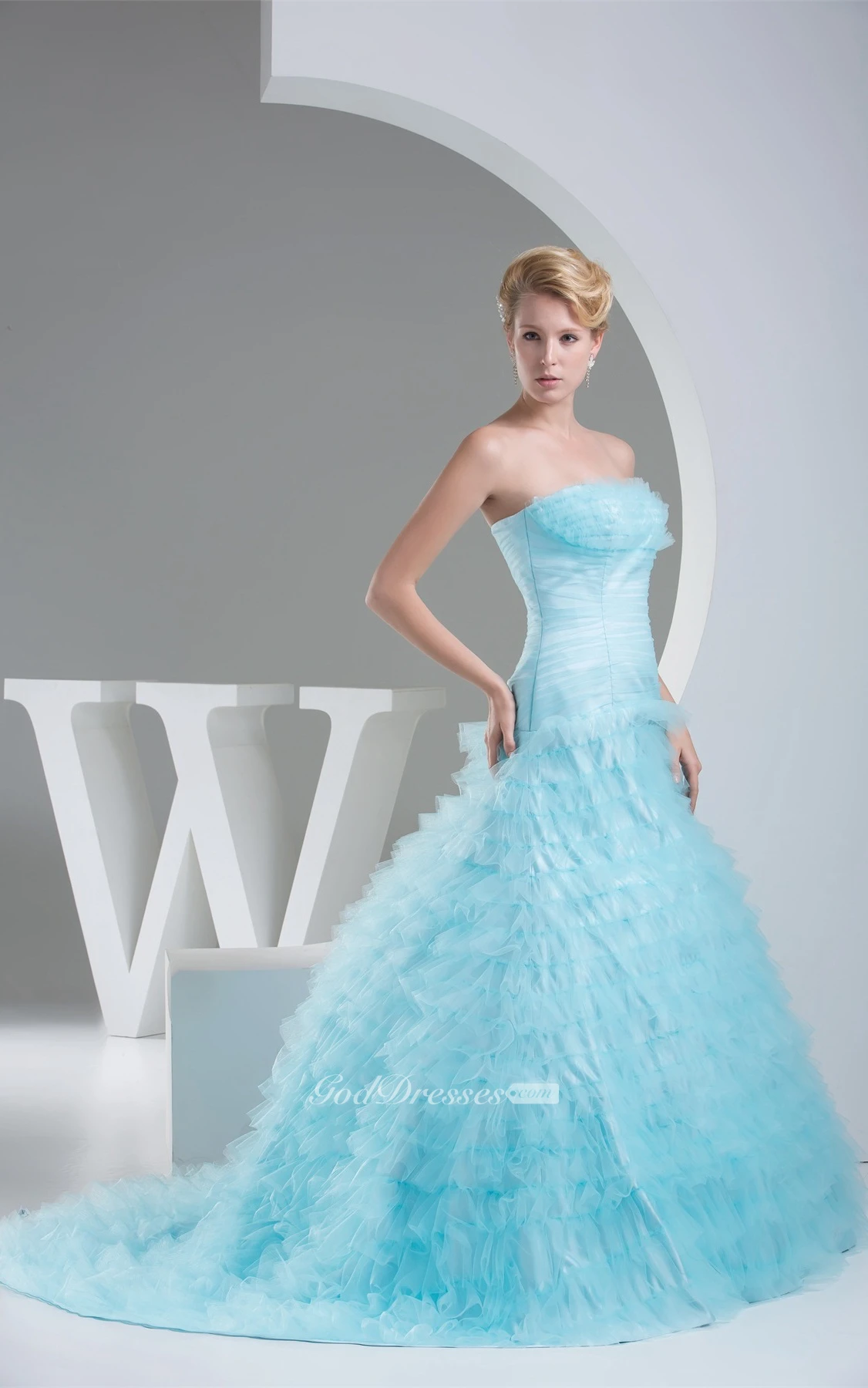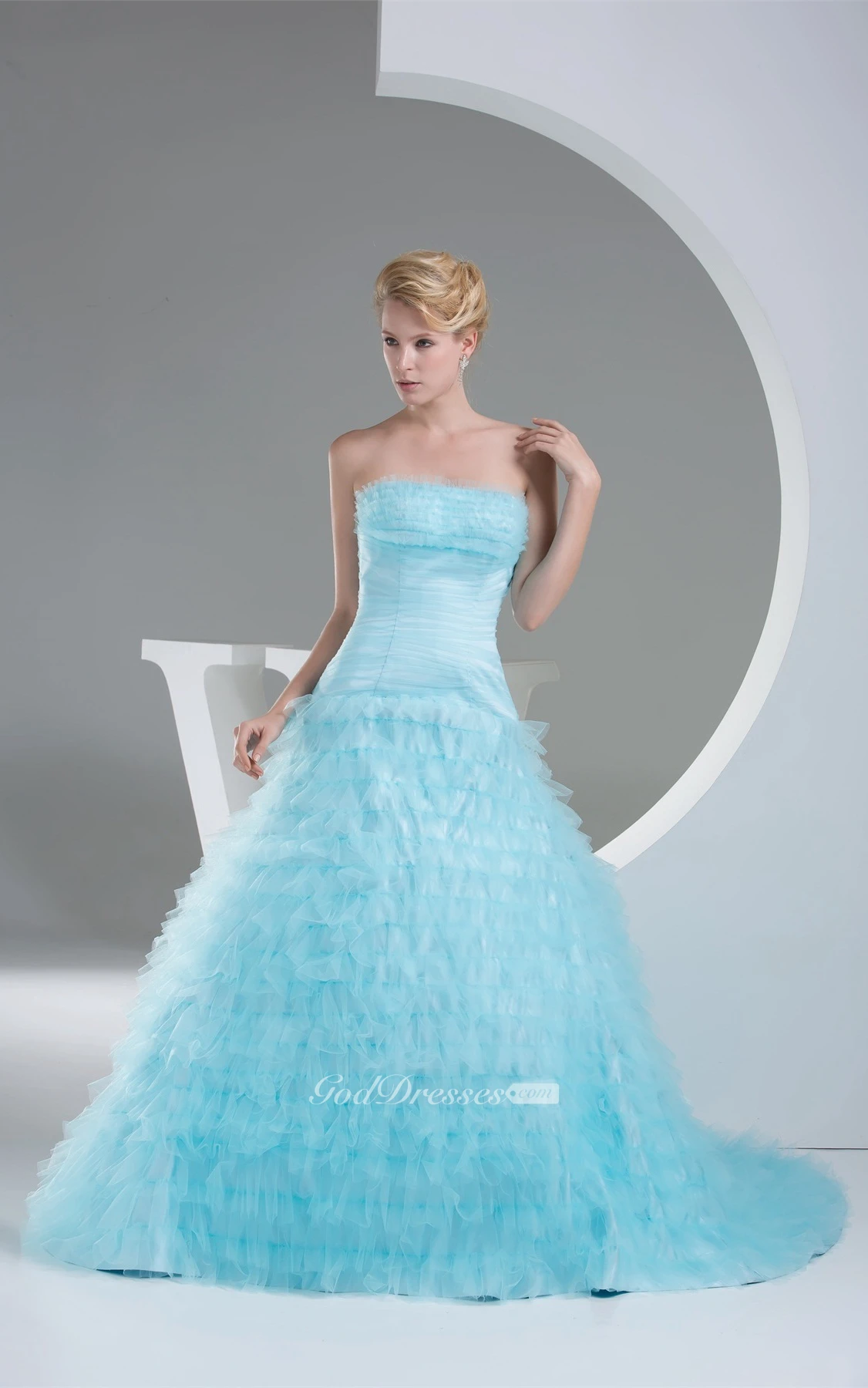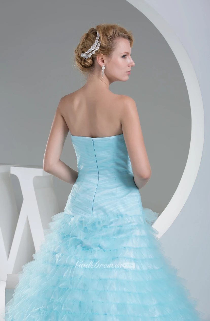 Sleeveless Ruffled A-Line Tiers and Dress With Ruching