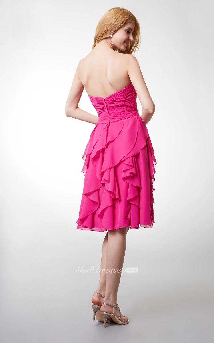 Sleeveless Ruffled Short Chiffon Dress With Ruching