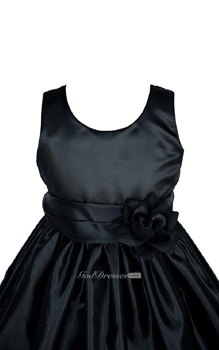 Sleeveless Ruffled Taffeta Dress With Flower Waist