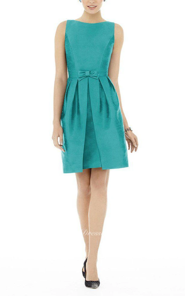 Sleeveless Satin Pleated Short Bridesmaid Dress