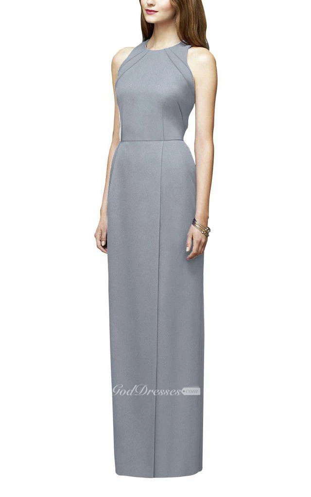 Sleeveless Satin Sheath Long Bridesmaid Dress