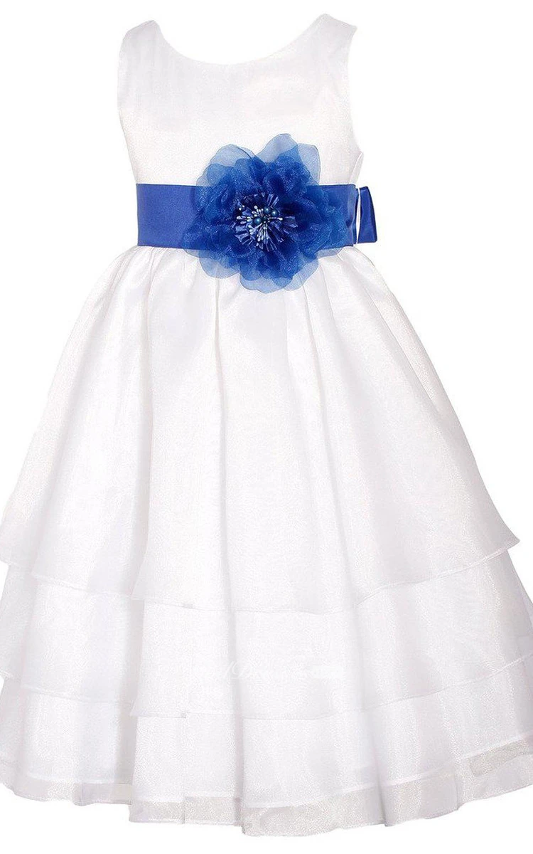 Sleeveless Scoop-neck A-line Dress With Flower and Bow