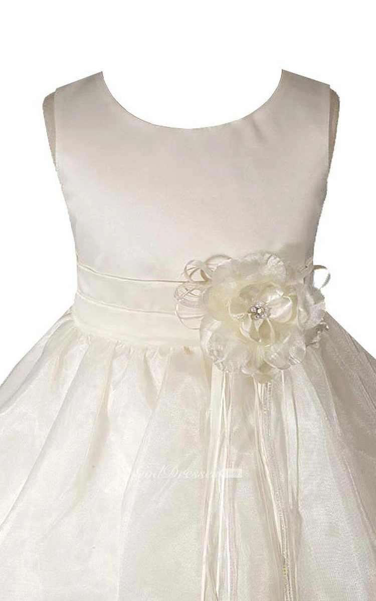 Sleeveless Scoop-neck A-line Dress With Flower and Bow