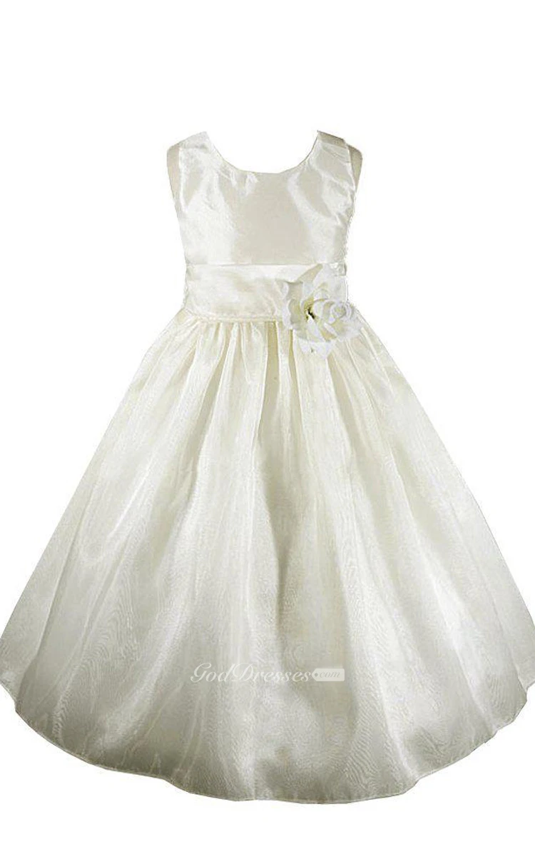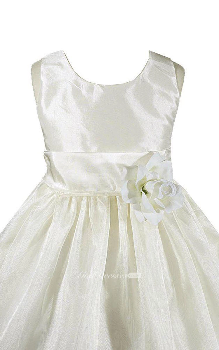 Sleeveless Scoop-neck A-line Dress With Flower