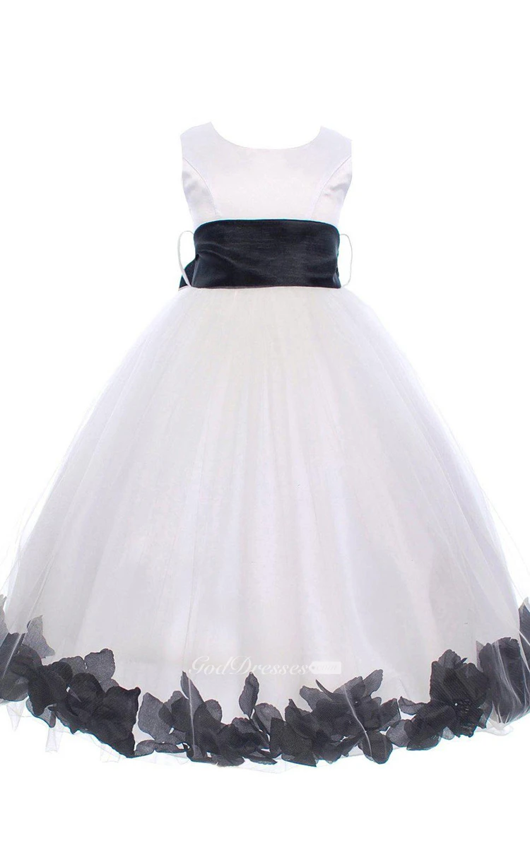 Sleeveless Scoop-neck Dress With Bow and Petals