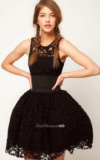Sleeveless Scoop Neck Pleated Lace Mini Dress