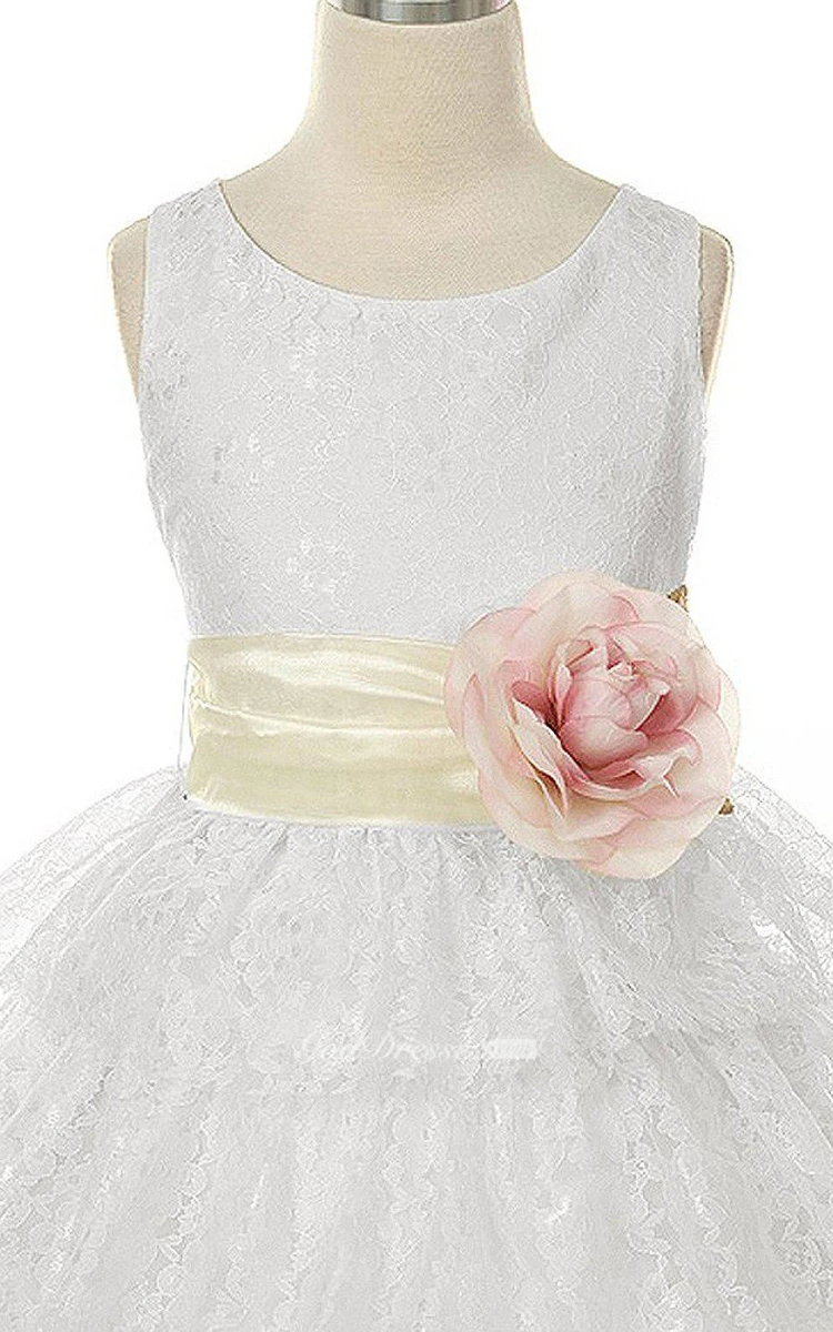 Sleeveless Scoop-neck Tiered Dress With Flower