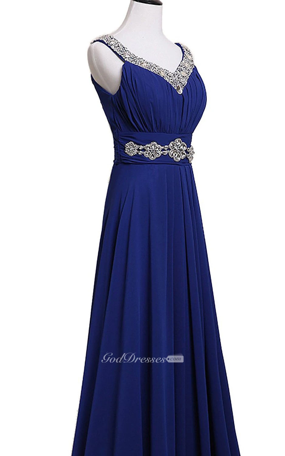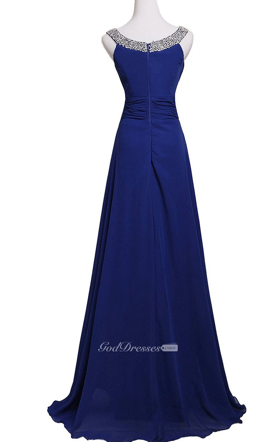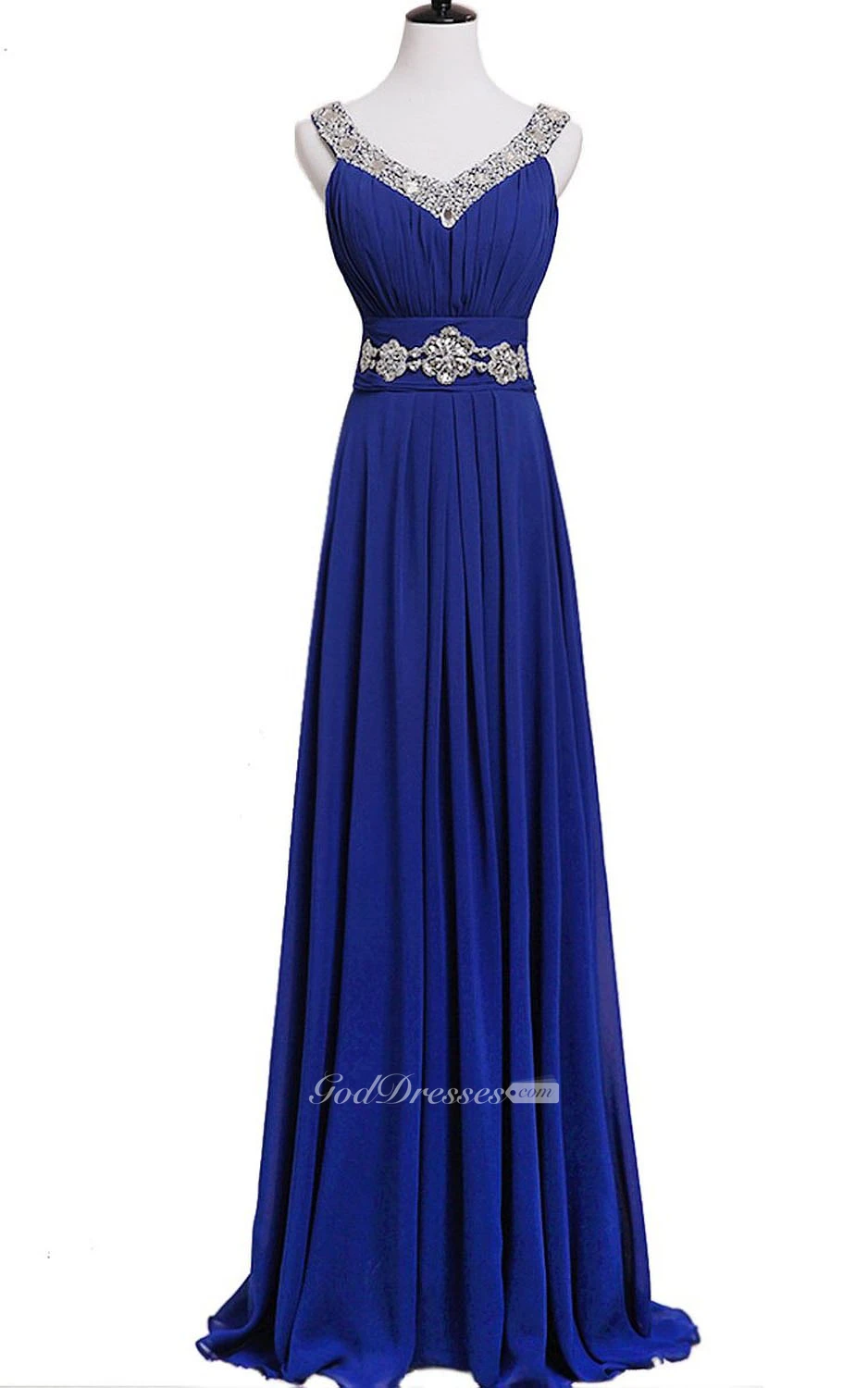 Sleeveless Sequined Long Pleated Chiffon Dress