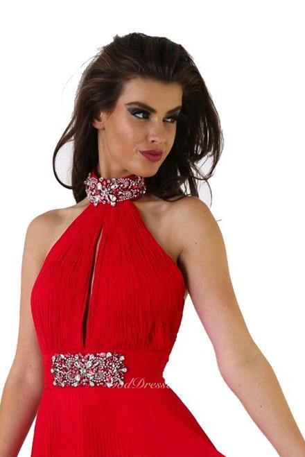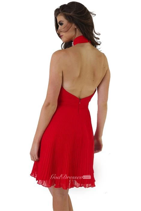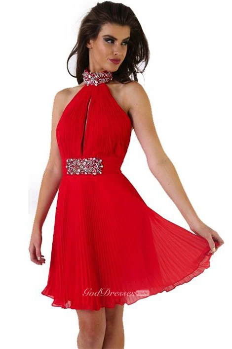 Sleeveless Short Mini High Neck Pleated Chiffon Prom Dress With Beading