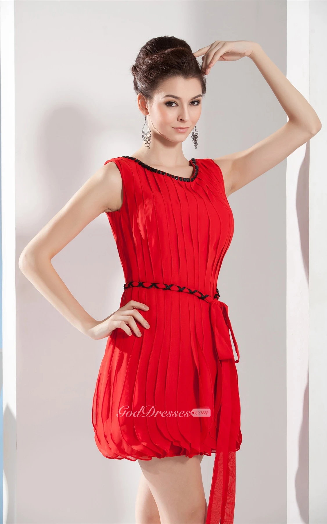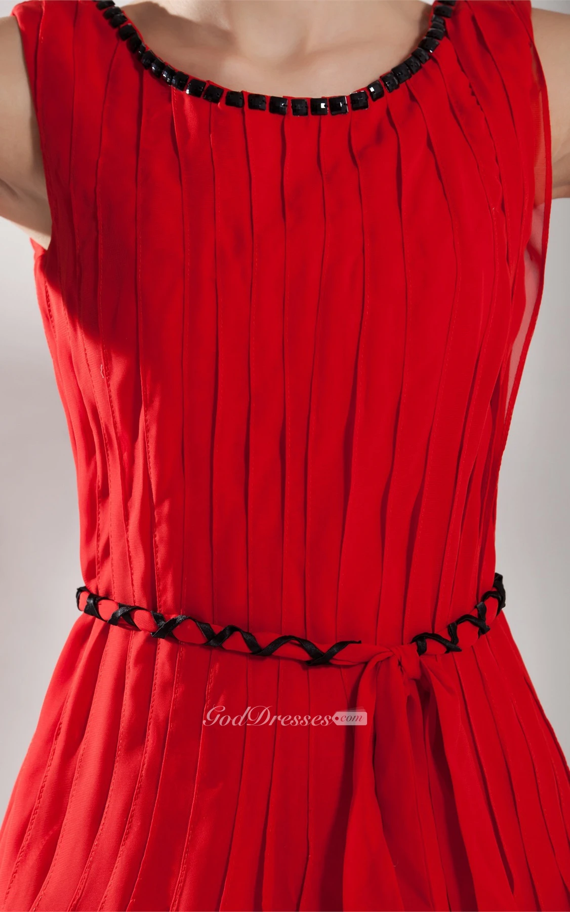 Sleeveless Short Ruched Beading and Dress With Ribbon