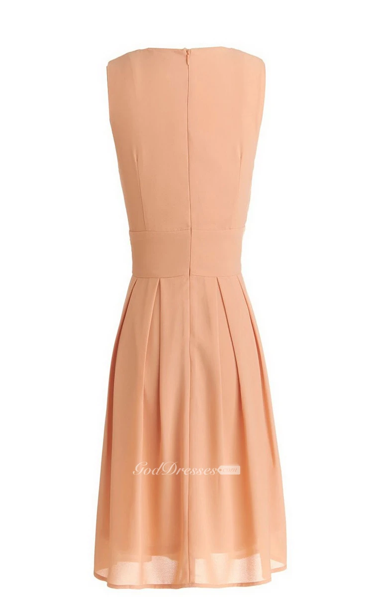 Sleeveless Short Ruffled and Embroidered Chiffon Dress