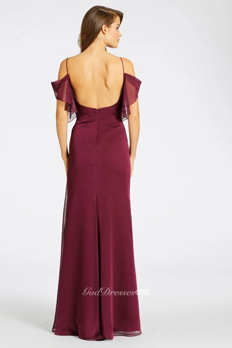 Sleeveless Spaghetti Chiffon Backless Bridesmaid Dress