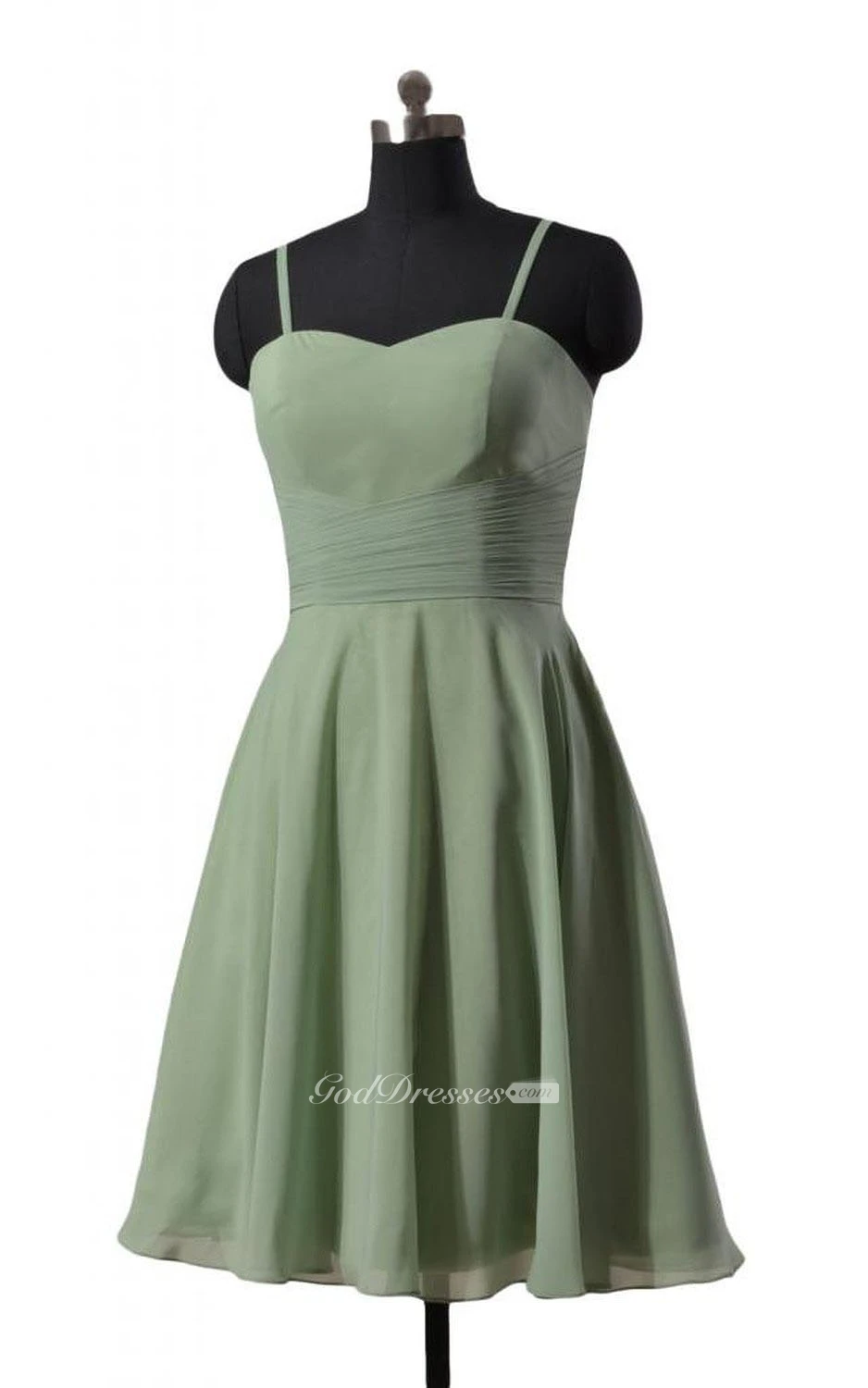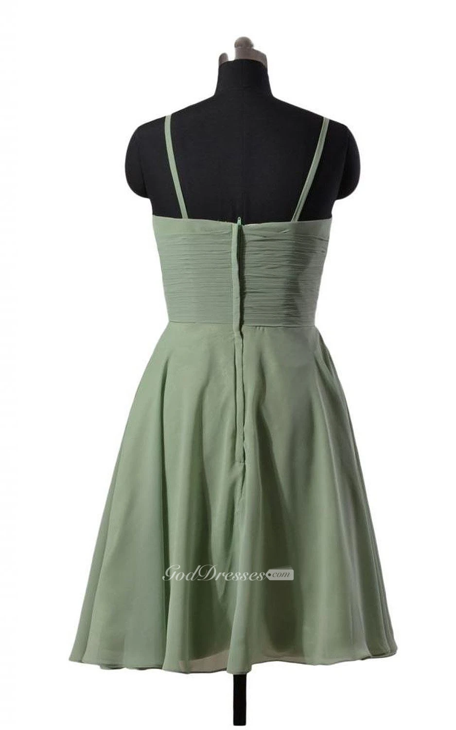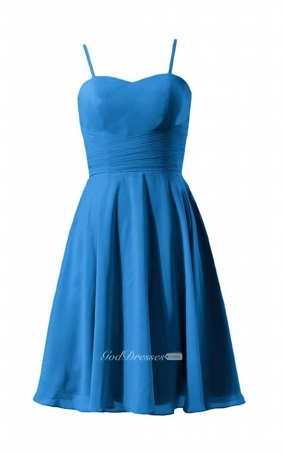 Sleeveless Spaghetti Strap Knee-length Pleated Chiffon Dress