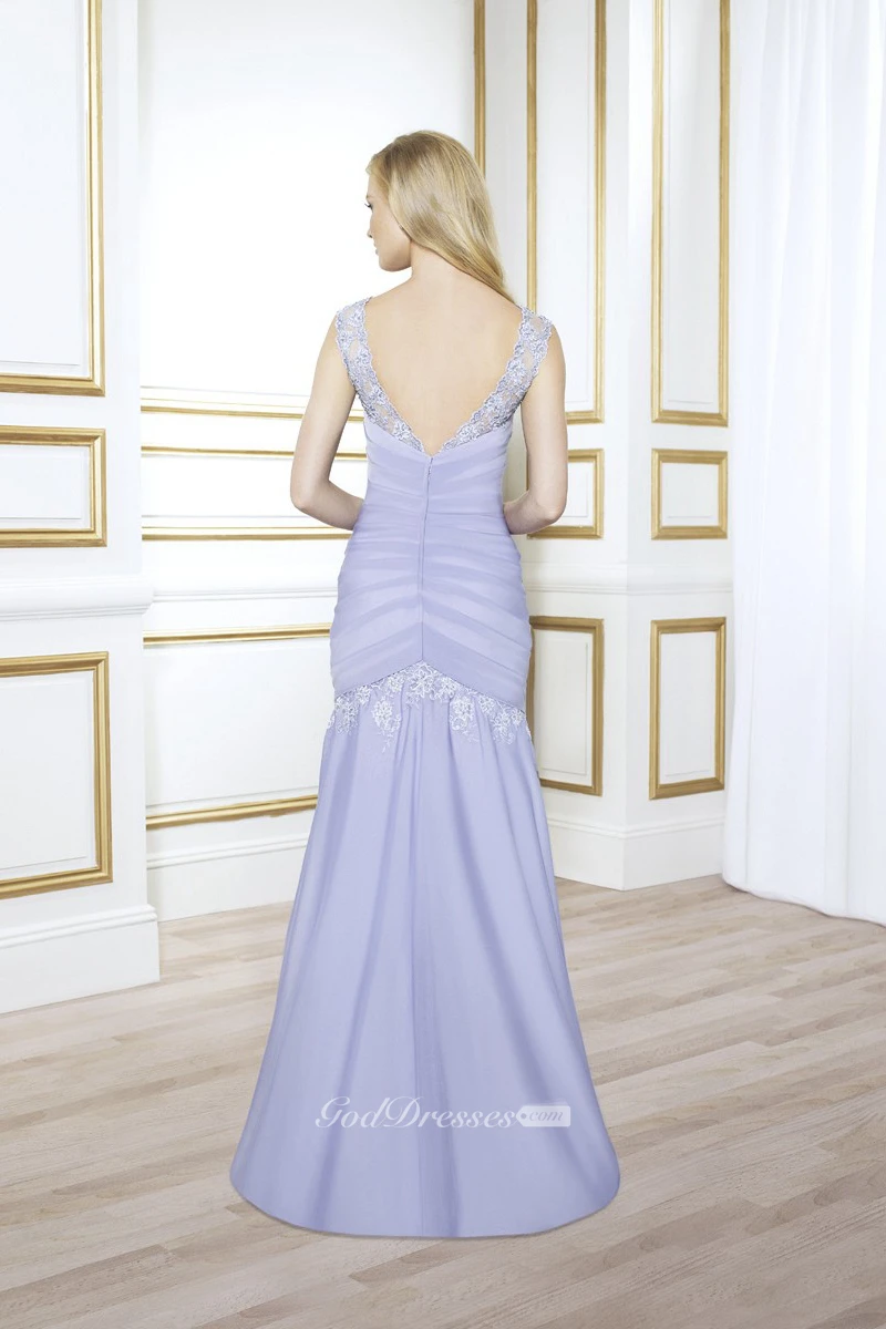 Sleeveless Square Neck Appliqued Satin Formal Dress With Low-V Back