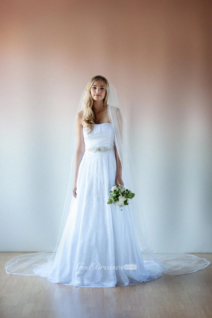 Sleeveless Strapless A-Line Beaded Lace Dress With Open Back