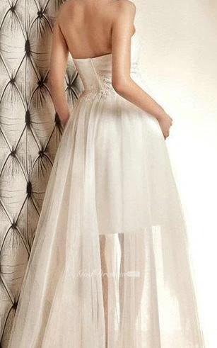Sleeveless Strapless A-Line Tulle Dress With Open Back and Beaded Band