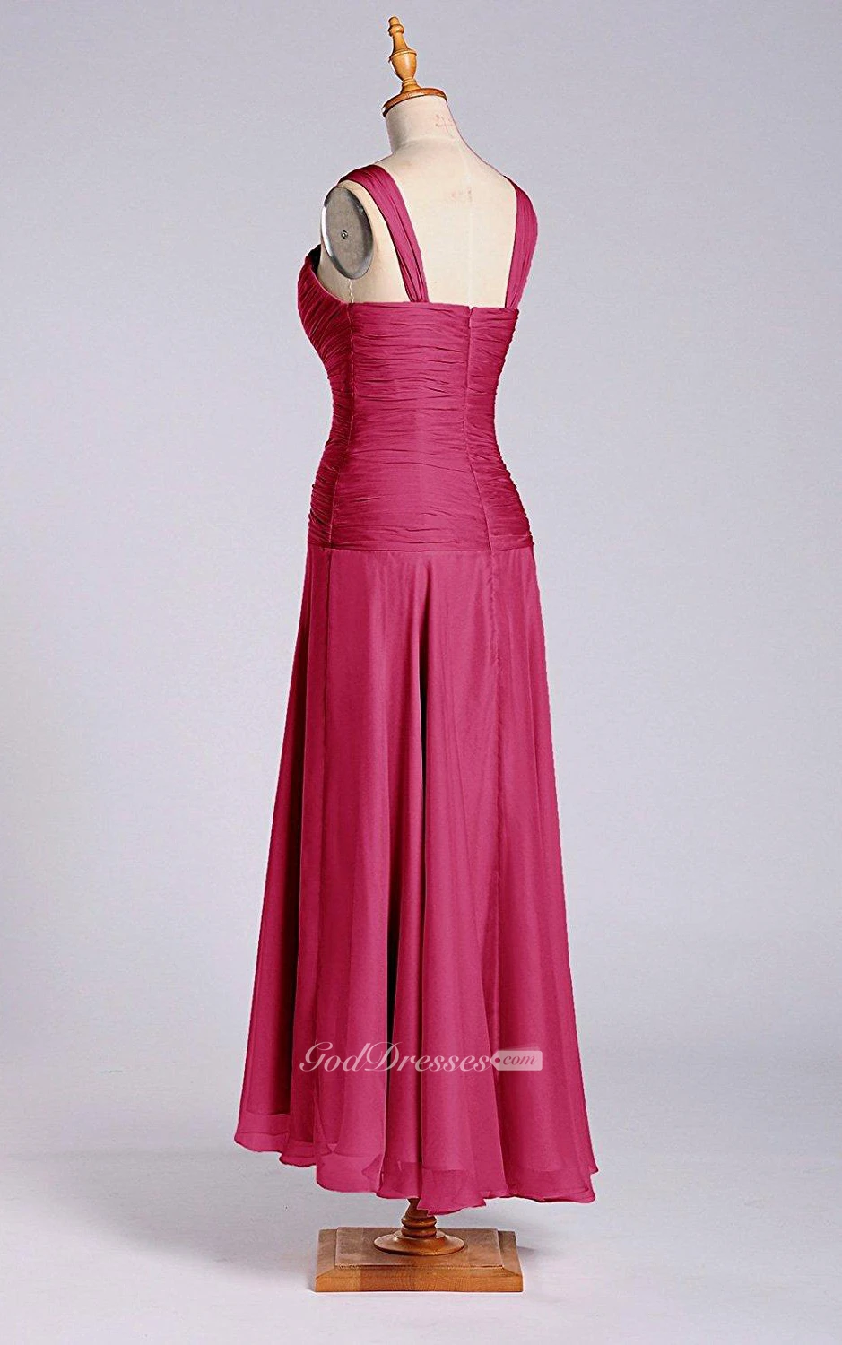 Sleeveless Tea-length A-line Zipper Chiffon Dress
