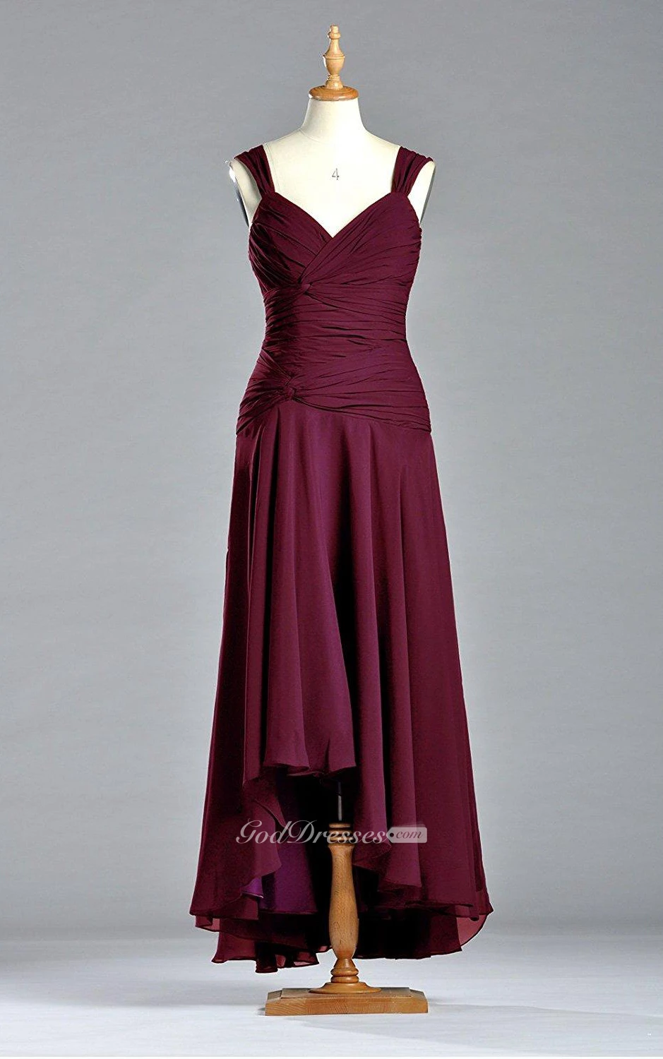 Sleeveless Tea-length Chiffon Dress with V Neckline