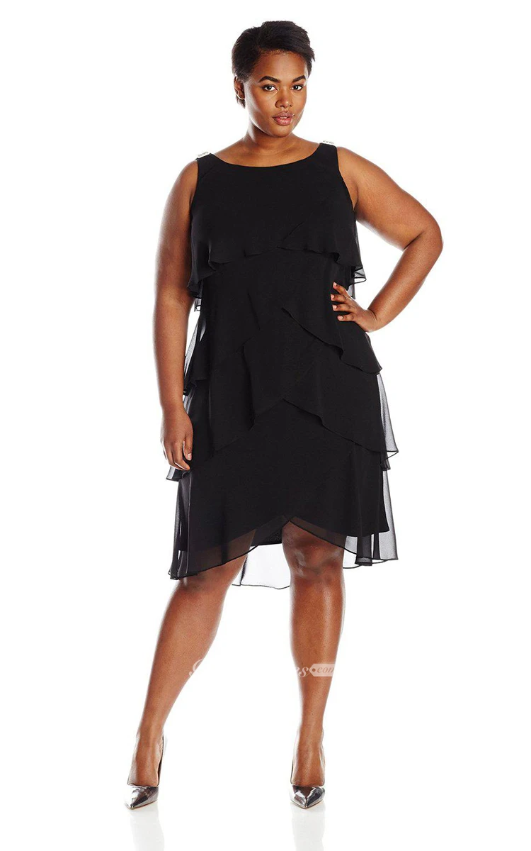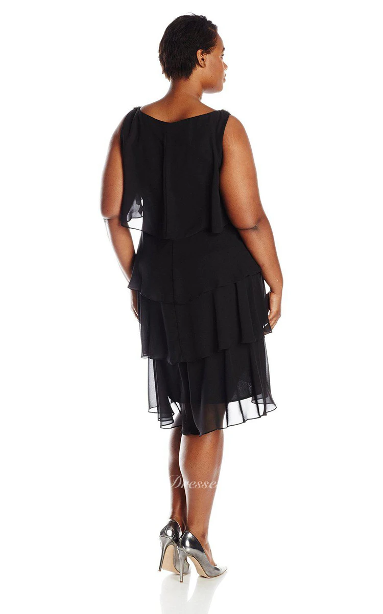 Sleeveless Tiered Chiffon Dress With Bateau Neck