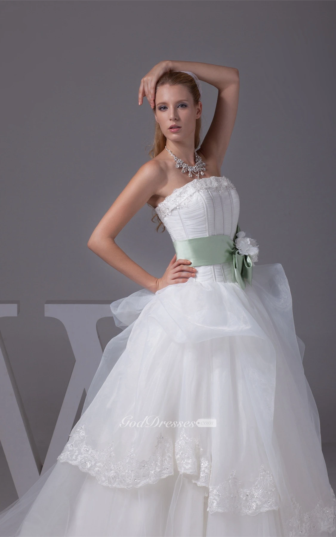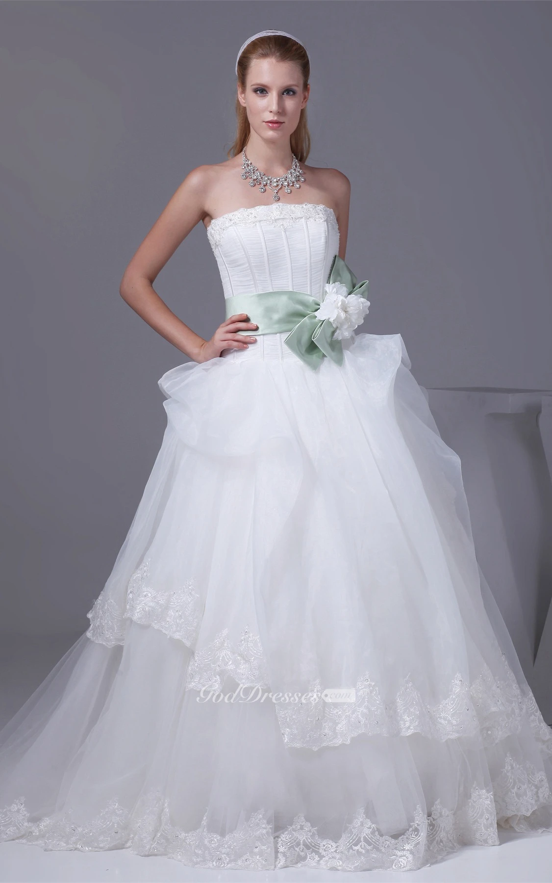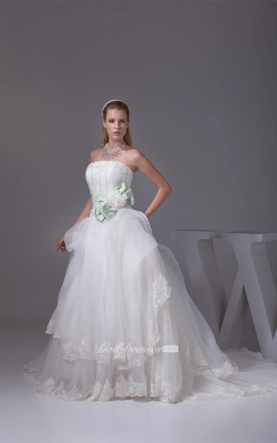 Sleeveless Tulle Appliques and Ball-Gown With Bowknot