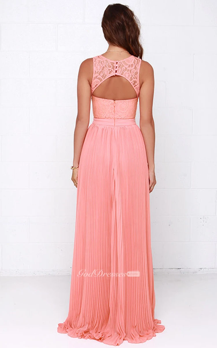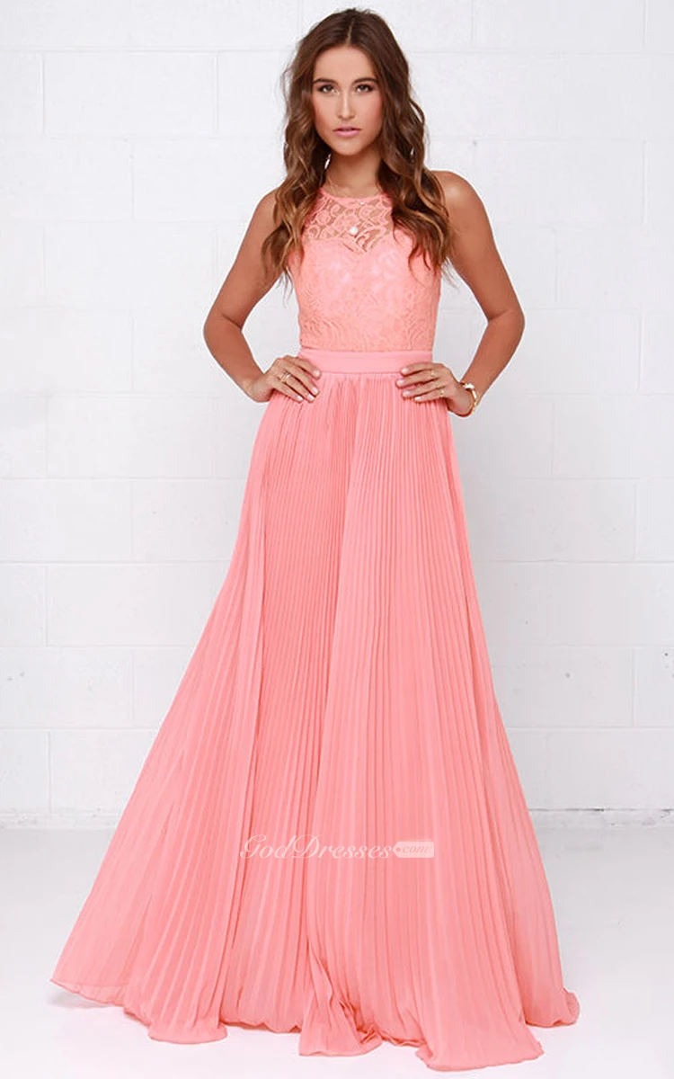 Sleeveless Unique Pleated Gown With Lace Bodice