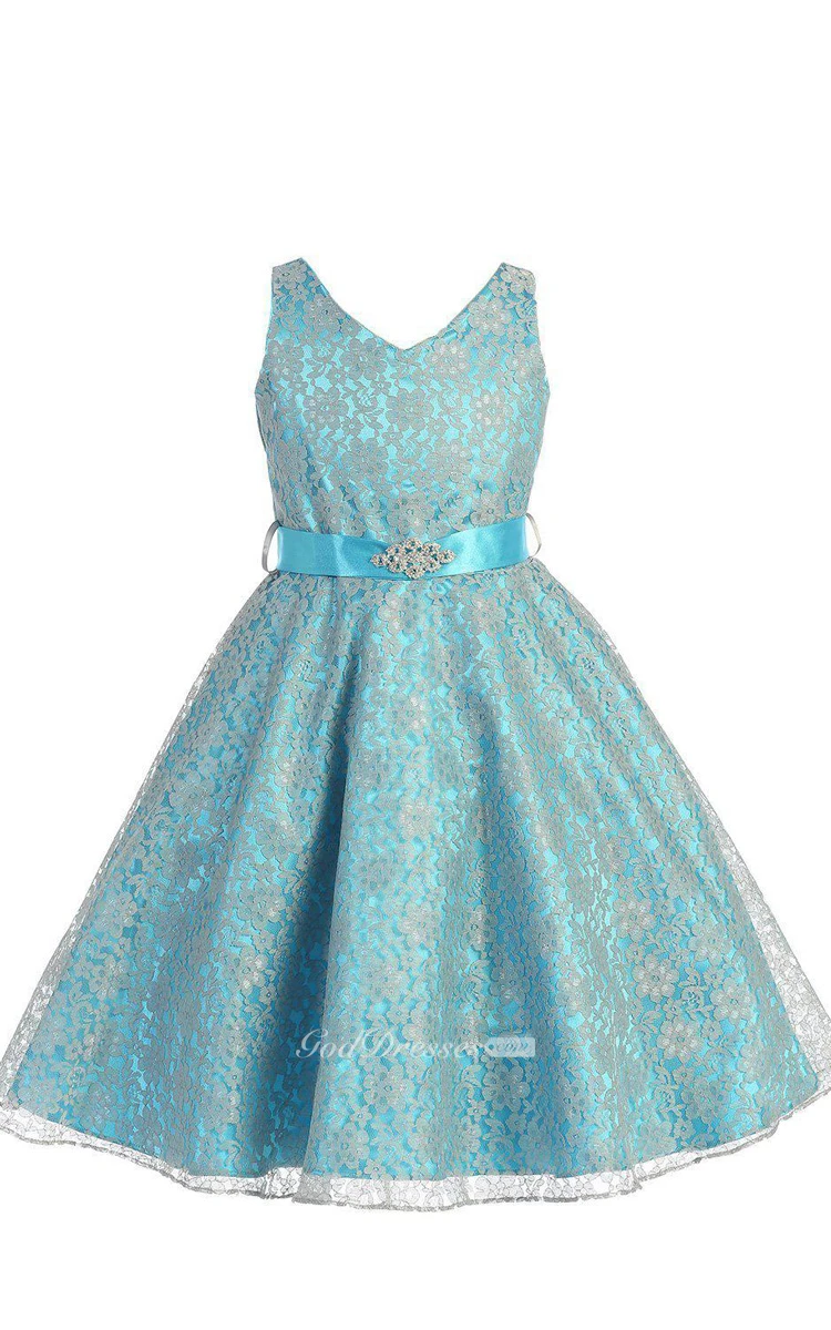 Sleeveless V-neck A-line Dress With Beadings and Bow